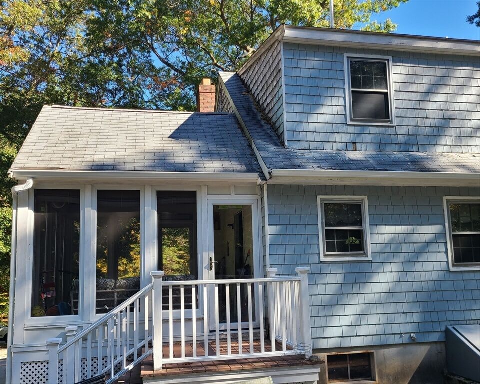 Six room, four bedroom, two full bath New England Cape located in a very desirable Hanson neighborhood. The first level has a full bath and an eat in kitchen leading to a comfortable three season porch. Hardwood floors throughout the remainder of the first floor in both bedroom, hallway, office, and fireplaced living room. The second level has a full bath and two large bedrooms with wall-to-wall carpet. Both bedrooms have large closets with ample storage space with access to the knee walls in each room. Enjoy your outdoor activities and gatherings in your spacious back yard (almost 3/4 acre yard). Close to shopping, restaurants, and all of the area amenities. Only minutes to the commuter rail.