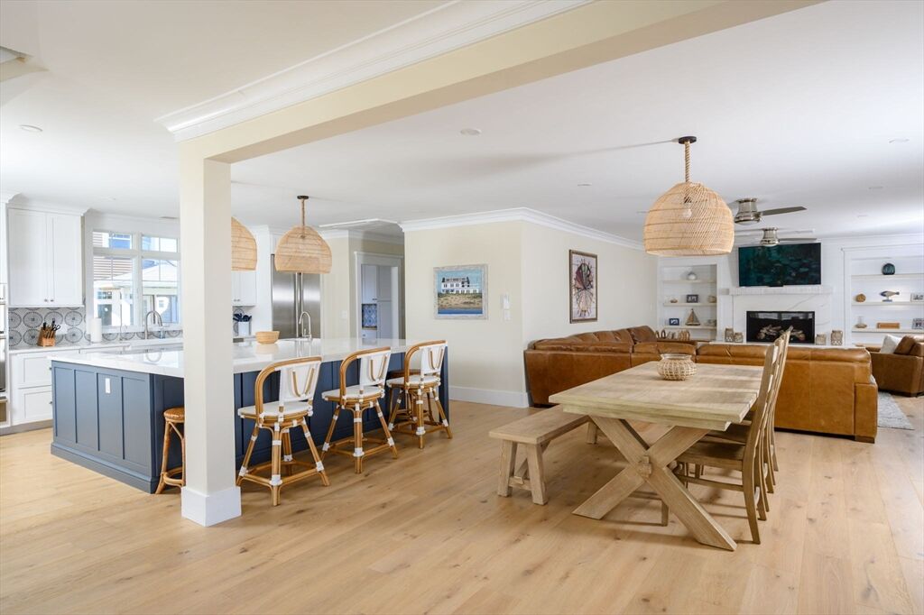 Experience the ultimate coastal lifestyle in this direct waterfront sanctuary on the shores of Hull, Massachusetts. Enjoy the soothing sounds of ocean waves while taking in breathtaking views and tranquil sunrises across expansive living space of over 6,000 sq ft. The home boasts 7 generous bedrooms and 4½ bathrooms—ideal for family and guests. Entertain in an elegant chef’s kitchen featuring premium appliances, sleek finishes, and abundant space for culinary gatherings. Embrace the warmth and efficiency of gas heating, complete with a reliable generator for peace of mind. An oversized one-car detached garage adds convenience, and with two driveways parking is never an issue. Step outside to discover expansive decks, a large porch, beautiful stone patios and lush yard & landscape. The versatile third floor offers bonus space ready for additional customization. Elegantly blending practicality with dramatic seaside views, this home offers a rare chance to own your piece of paradise.