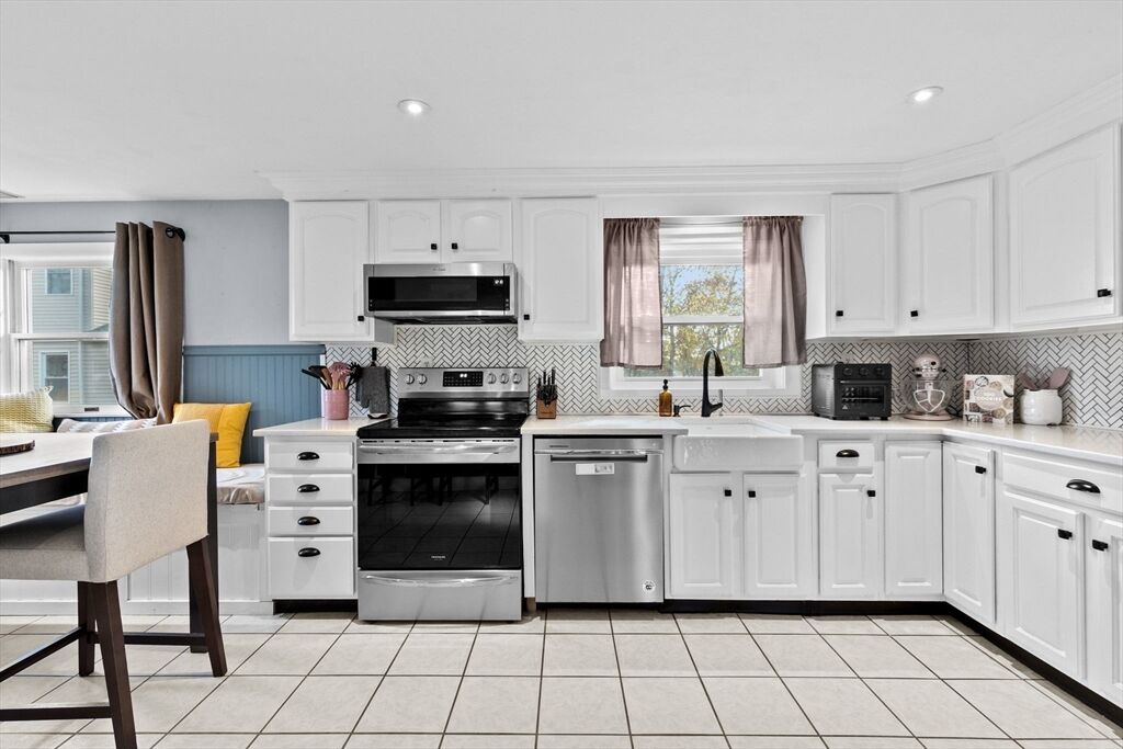 Fall in love with this beautifully updated split level home that truly has it all! The first floor features a stunning kitchen with tile flooring, stylish backsplash, stainless appliances, and a cozy built-in dining nook. The open living room adds charm with a fireplace and custom built-ins, perfect for relaxing or entertaining. Upstairs you’ll find 3 generous bedrooms with gleaming hardwoods and a refreshed full bath with shiplap walls. Need more space? The lower level offers a versatile family room ideal for a gym, office, playroom, or 4th bedroom and also has a laundry room, utility room and walkout to a 3-season screened in porch. Other features include a welcoming front porch, 1-car garage and many updates throughout: new central AC, furnace, ROTH oil tank, hot water tank, metal chimney liner, recessed lighting and living-room windows. All in a fantastic location near the rail trail, with easy highway access and just 2 miles from the Abington Commuter Rail.