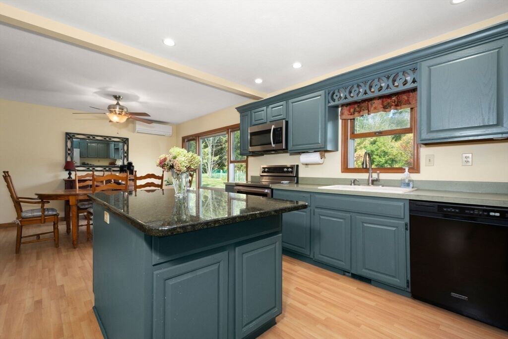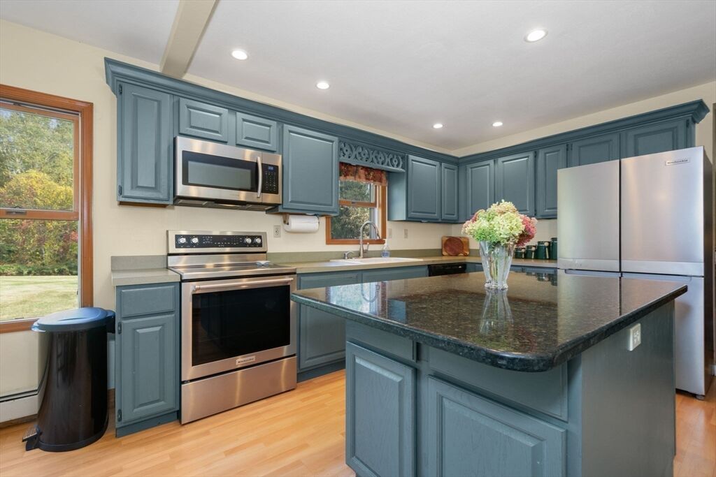 A traditional Farmer's Porch with an inspired mahogany deck welcomes you to this classic home on three stunning acres! An exceptional opportunity to experience comfortable living in a serene setting, it is well suited for multi-generational living. Natural light fills the Dining area while ample prep space, a granite island, and young SS appliances define the kitchen. Find peaceful relaxation and the warmth of a Harmon pellet stove in the Sitting Room. Family Room sliders extend living space to a low maintenance deck (2020) with a fabulous view. The 2nd floor presents four Bedrooms, three full Baths boasting tile floors, and laundry area. Flexible Recreation Room (2021) living area over the garage features a pull-down movie screen, a full kitchen and bath, and separate front entrance for Super Bowl guests or college student living at home. Updates include vinyl siding, oversized garage, and beautiful oak floors. Hiking and swimming at Buffamville Lake Park, short commute to Worcester!