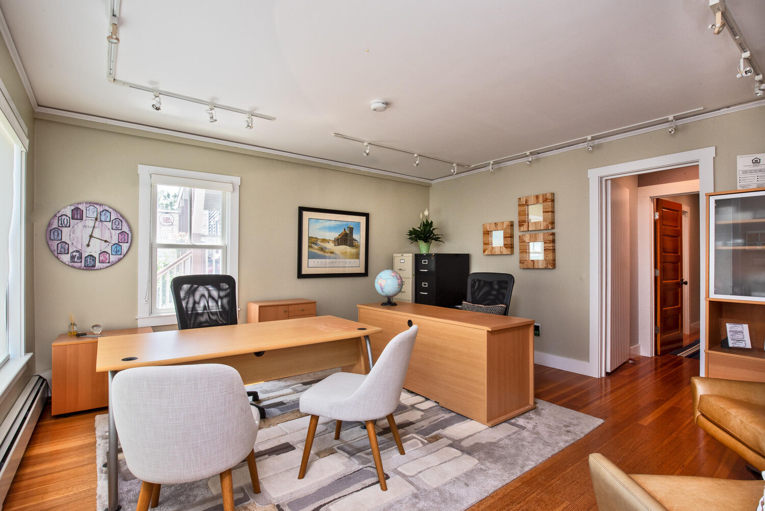Live, Work, and Play in the Heart of Provincetown's West End! This unique mixed-use single-family home offers the perfect blend of charm, flexibility, and location. The first floor includes an office with great visibility on Commercial Street and features its own half bath and private entrance -- ideal for running your own business or keeping as an income-producing unit.The rest of the main level offers a bedroom, full bath, cozy den and an area for entertaining guest.. French doors open onto a deck overlooking a private fenced yard. Upstairs, the living room offers views of the bay and Provincetown's historic neighborhood. The updated kitchen includes granite countertops, stainless steel appliances, and modern cabinetry. A laundry area and full bath are located off the kitchen. The primary en suite bedroom sits at the back of the home, offering peace and privacy along with a private deck. Additional highlights include new mini-split systems, town sewer and an offsite tandem parking space . With a strong rental history and sought after location, this home is a rare find that combines lifestyle, income potential and coastal charm. Owner/broker