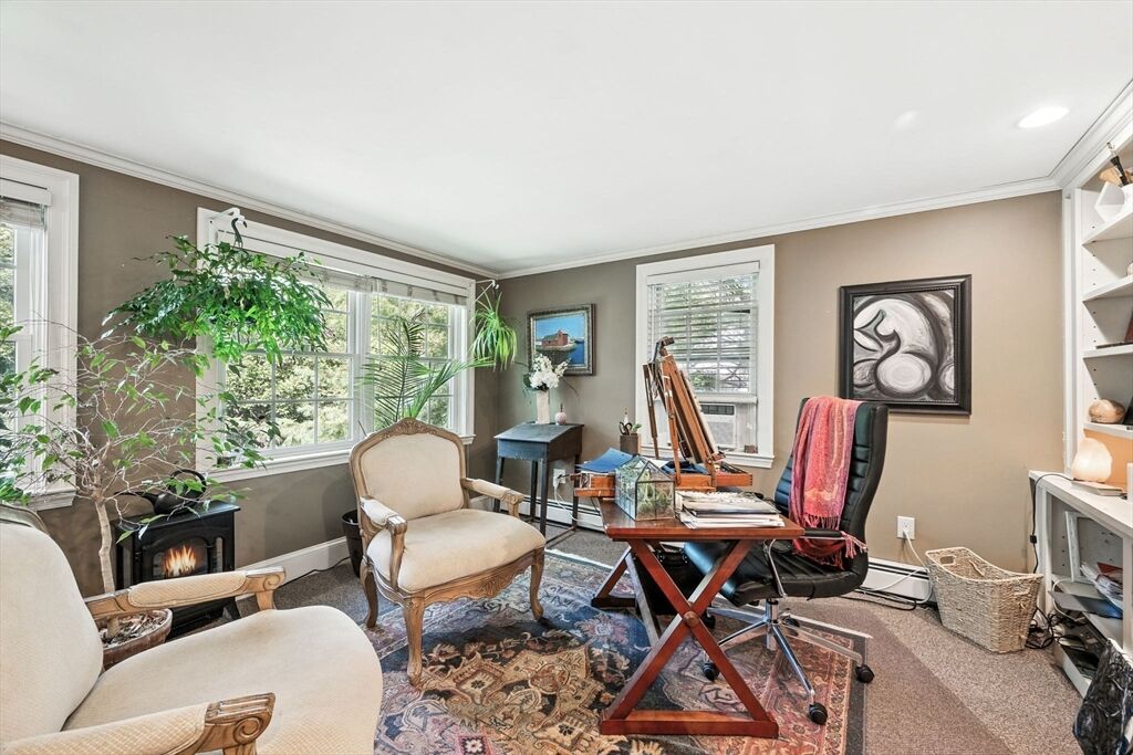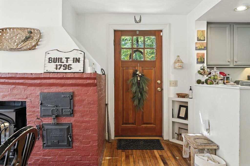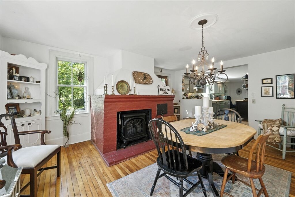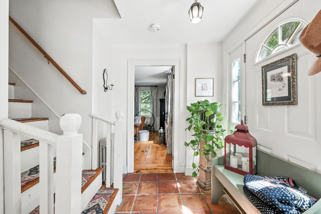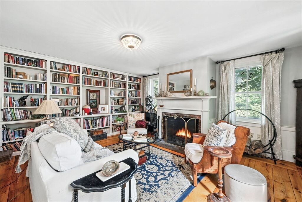 Spacious antique colonial with original and contemporary features! Wide pine floors, a working fire place, and built-ins create a charming atmosphere while a beamed ceiling family room and second floor office from a more recent addition provide the space for today's needs. This home flows beautifully with the kitchen opening to both the dining room and family room, yet the tucked away, cozy living room provides a spot for quiet moments. Upstairs houses the beautiful main bedroom suite complete with 3/4 bath, 2 closets, and a fabulous office with built-ins. Two additional bedrooms, full bath, laundry, and linen closet complete the second floor. The finished, walk-up attic offers lots of possibilities for a playroom, craft space, etc. Outside a nicely sized, private yard includes two patio areas; one off of the family room, and the other under an arbor. New boiler to be installed prior to closing!! Convenient to town, highway and schools this is the ideal place to make your home!