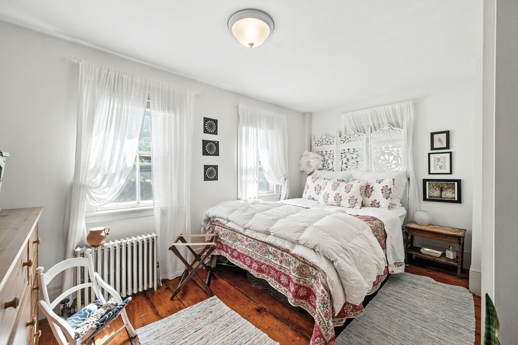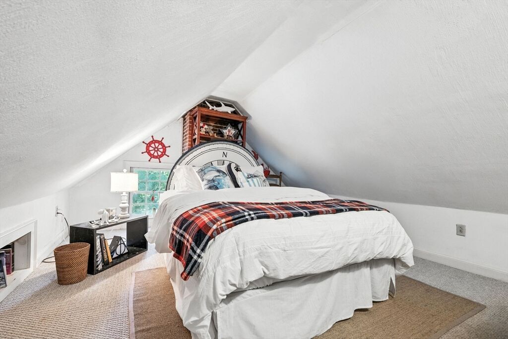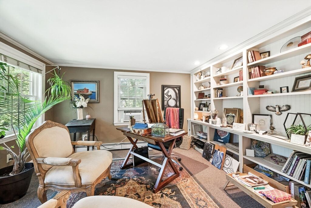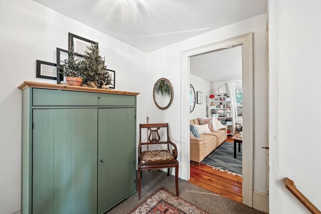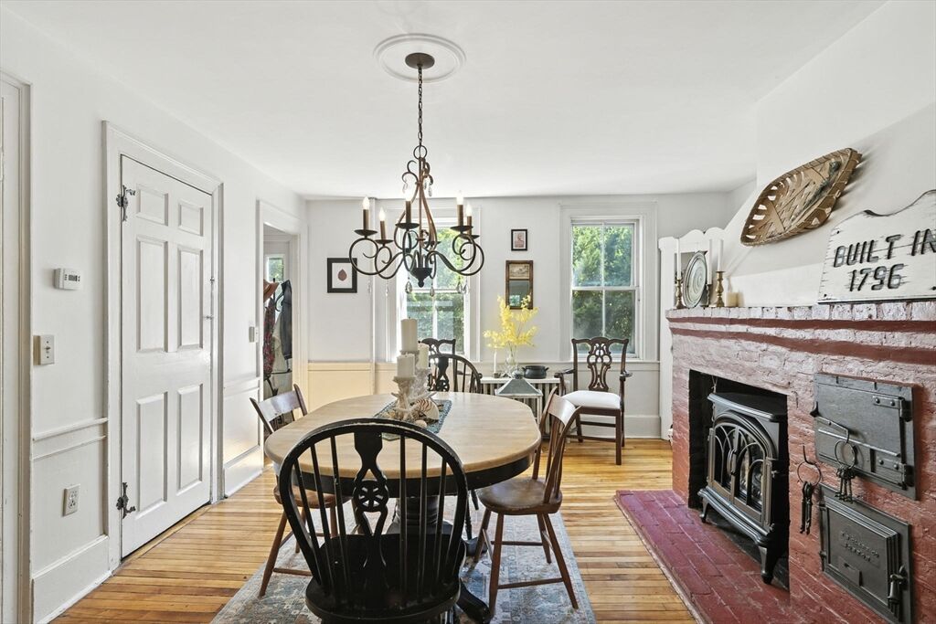 Spacious antique colonial with original and contemporary features! Wide pine floors, a working fire place, and built-ins create a charming atmosphere while a beamed ceiling family room and second floor office from a more recent addition provide the space for today's needs. This home flows beautifully with the kitchen opening to both the dining room and family room, yet the tucked away, cozy living room provides a spot for quiet moments. Upstairs houses the beautiful main bedroom suite complete with 3/4 bath, 2 closets, and a fabulous office with built-ins. Two additional bedrooms, full bath, laundry, and linen closet complete the second floor. The finished, walk-up attic offers lots of possibilities for a playroom, craft space, etc. Outside a nicely sized, private yard includes two patio areas; one off of the family room, and the other under an arbor. New boiler to be installed prior to closing!! Convenient to town, highway and schools this is the ideal place to make your home!