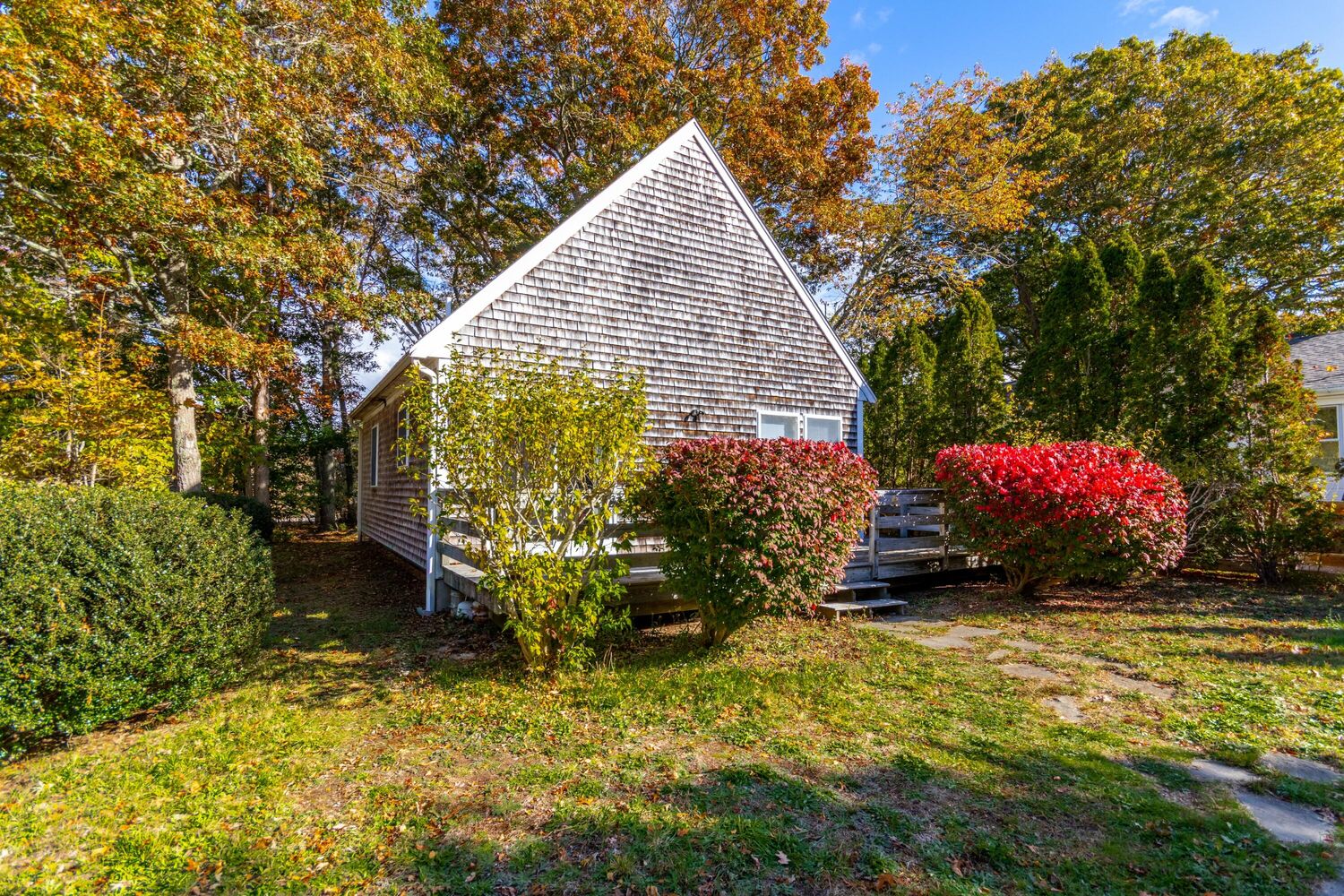 Located in the desirable Shorewood seaside community with access to 3 right of ways to the water and deep water access to Vineyard Sound is this 2 bedroom, 1 bath Cape with large finished family room upstairs for additional living space. Open floor plan featuring cathedral/beamed living, dining and kitchen with slider to the spacious deck and gas heat. Great opportunity for 1st time home buyers, investor or Cape Cod getaway. All parties to verify information contained herein.