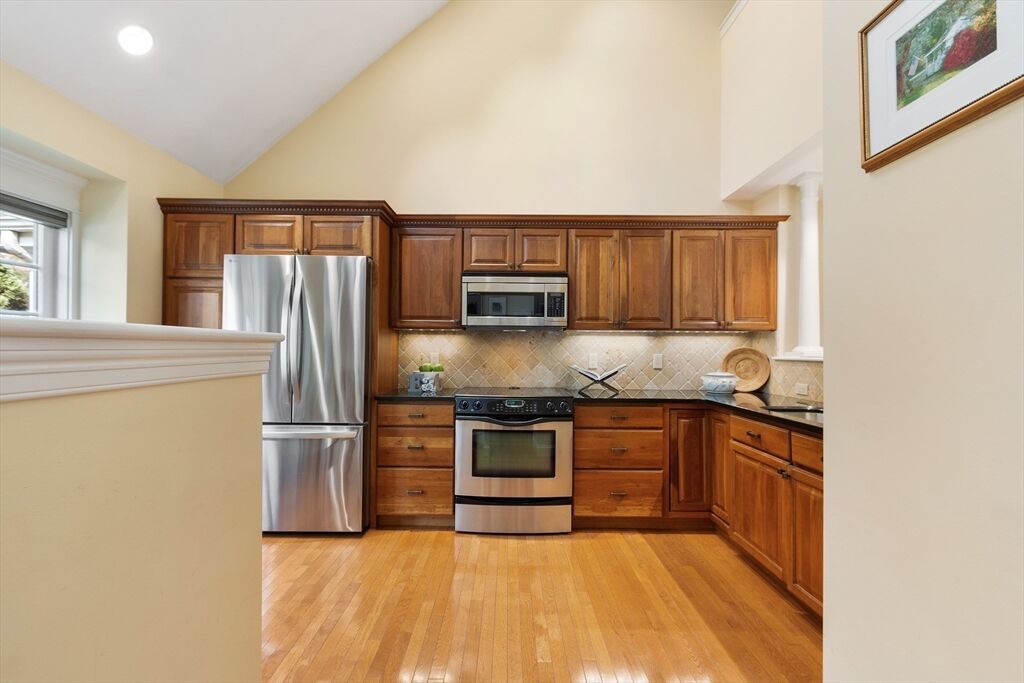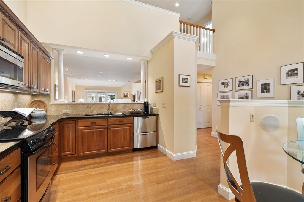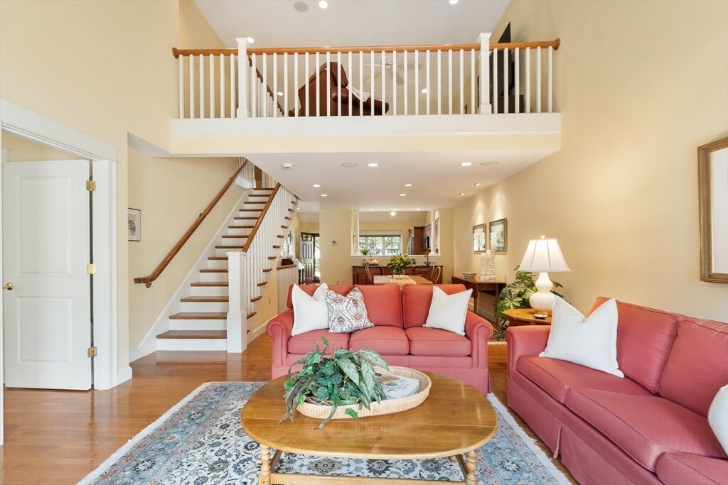 Welcome to Faxon Farm at Meetinghouse at Stow – an active 55+ community! The upgraded townhome features hardwood floors throughout the first floor and an open layout ideal for entertaining.The granite/stainless kitchen flows into a dining room with wet bar and a vaulted living room with cozy gas fireplace.The first-floor main suite offers one-level living with a spacious walk-in closet and spa-like bath with dual vanities and a tile shower. Also on this level: laundry, a guest half bath, and direct access to your attached garage.Upstairs, you’ll find a loft-style family room, 2nd bedroom, full bath, and private office – ideal for guests or hobbies.The finished lower level offers incredible versatility—perfect for an exercise room, 2nd office, bonus space, and a workbench area. You’ll also find exceptional storage with open shelving and a spacious finished storage closet. Step outside to your own private patio oasis with natural garden with handy access to the second garage.