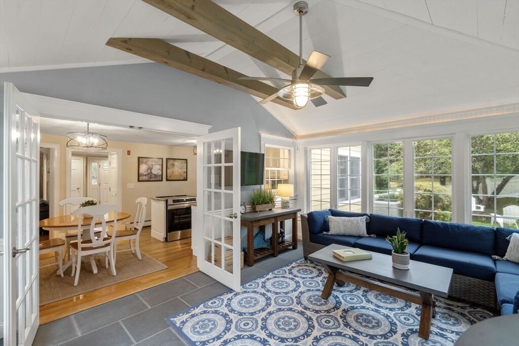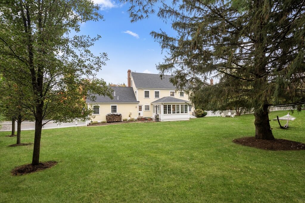 Lovingly maintained and just minutes from Memorial School and 1/2 mile from Medfield Center. This striking home offers over 2,800 sq ft of versatile living space. Oversized living and dining rooms, along with a fireplaced family room, provide the perfect setting for entertaining. The updated eat-in kitchen opens to a radiant-heated sunroom with serene views of the private backyard. Upstairs, the primary bedroom features a walk-in closet and full bath, complemented by two generously sized bedrooms. A finished staircase leads to the expansive third floor, ready for your personal touch, while the lower level offers an office/bedroom and game room. The circular driveway and beautifully landscaped lot complete this exceptional property, combining style, functionality, and convenience in one coveted Medfield location.