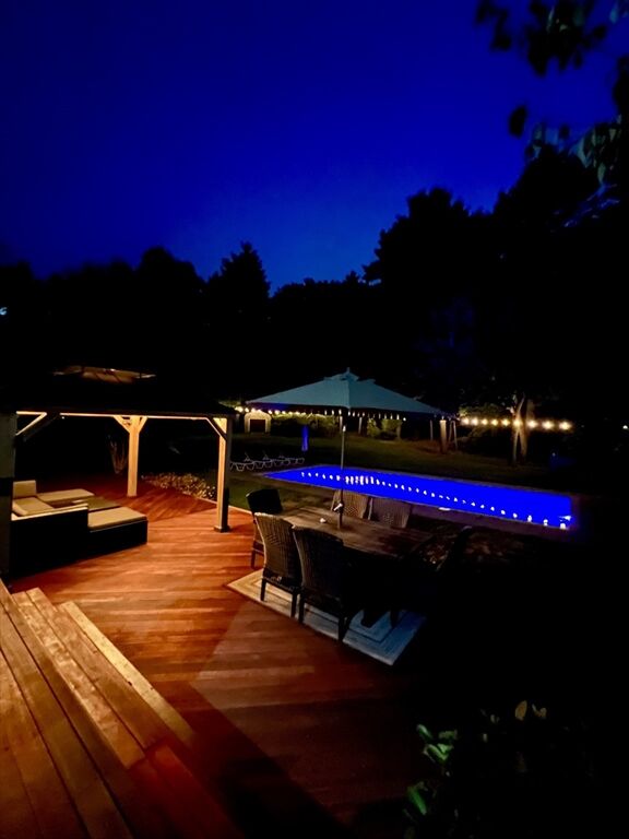 A Charming Cape Style Home in a Prime Lakeville Location! This classic 6-room home offers timeless character, generous space, and endless potential. Featuring 3 spacious bedrooms, 2 baths, a heated attached garage, and an expansive finished basement with large laundry room and beautiful bamboo floors. Inside, you’ll find a conventional floor plan with eat-in kitchen, formal dining, and a roomy front-to-back living room with wood burning fireplace. Features include hardwood floors throughout, Anderson windows, whole house generator, central air & irrigation. Step outside to your own private oasis with a 40x18 in-ground heated salt pool, large mahogany decks, and a custom 10x10 metal roof gazebo and the professionally landscaped yard is completely fenced. Enjoy the convenience of being close to everything, just minutes from the commuter rail, elementary school, Library, local shops, Ted Williams Camp, restaurants, golf courses, lakes, and more!