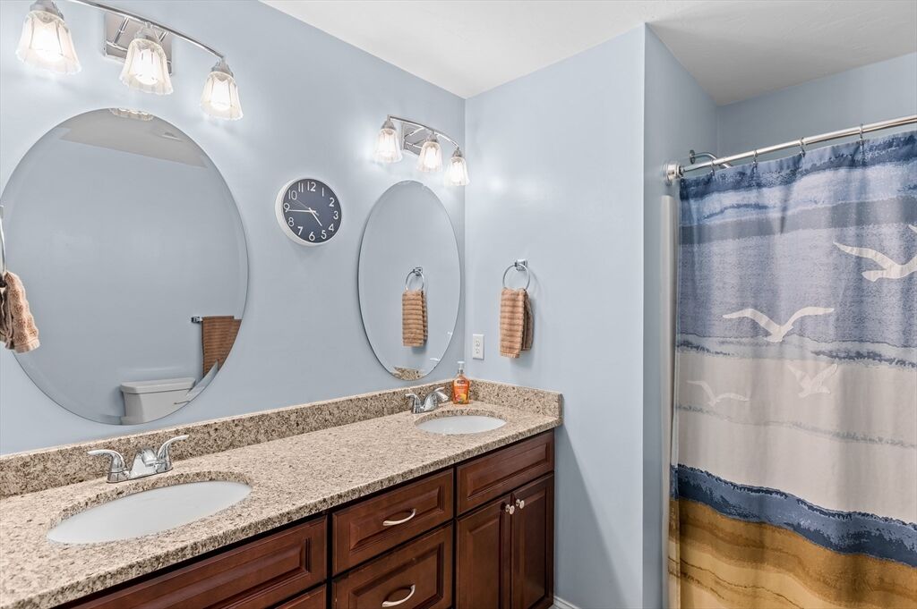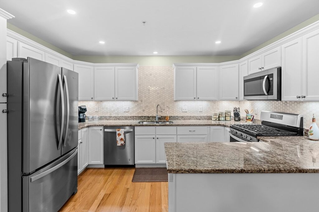 Welcome to Stratford Village! This 2 bed 2 full bath condo has been lovingly cared for & meticulously maintained! Enter in and find beautiful hardwood floors leading to your open concept kitchen & dining space! The stunning kitchen features granite countertops, stainless steel appliances, recess lighting, the gas stove is only a year old! The vaulted living room is designed for comfort boasting a cozy gas fireplace, sliding doors to the lovely back deck. The bedrooms have desired separation with an en suite master offering a large walk-in closet, perfect for hosting guests. Large unfinished basement has lots of storage & potential for extra living space!50AMP charging port in the 2 car garage for an EV & a Smart Garage opener as well. Home is well insulated for financial efficiency in the colder months! New cabinetry installed in the kitchen for a pantry, in the garage & over the laundry area as well for optimal storage space! Conveniently located just minutes to Rt 146 & the Pike.