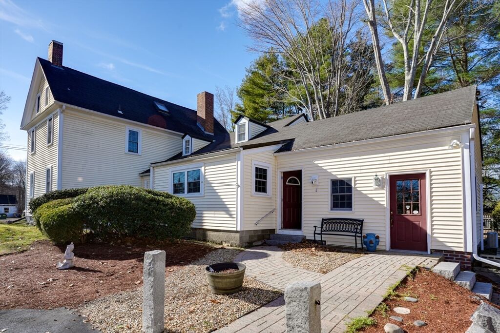 Historic Antique circa 1850 pastorally sited on 2.4 acres complemented by 30x36 barn/3 car garage, paddock, small apple orchard, older barn, just a gorgeous setting.This center entrance colonial is highlighted by 5 fireplaces, wide pine floors, and spacious rooms. The heart of the house is the large 24' kitchen warmed by woodstove with abundant cabinets, corian counters and sunny breakfast area. There is a convenient first floor bedroom and bath on this floor as well as the gracious living and dining room each with a fireplace. The 2nd level offer main bedroom with bath, spacious 2nd bedroom with fireplace, 3rd bath, and two recently renovated bonus room with backstair case to laundry area. The attic has two rooms but used for storage. The grounds are beautifully maintained and the pool was filled in. Additionally there is a back-up generator. The rustic 35x9 porch is delightful for outdoor living. This distinctive home is close to schools, and great for commuting.