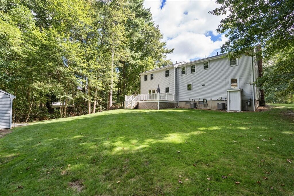 Beautiful Colonial in a sought-after Hanson neighborhood on a spacious private lot that backs up to conservation land with no homes behind you. Offering nearly 2,500 sq. ft. of finished space, this four-bedroom, two-and-a-half-bath home with gas heat and central AC features a welcoming front porch and a large deck for outdoor living. The first floor includes an eat-in kitchen with island, dining area, cozy fireplaced living room, and a bonus family room that opens to the deck, plus a convenient half bath. Upstairs, the primary suite includes a full bath, while three additional bedrooms with ample closet space share a second full bath. Located close to the Hanson commuter rail with easy highway access to Route 3, this home combines neighborhood living with privacy and convenience.