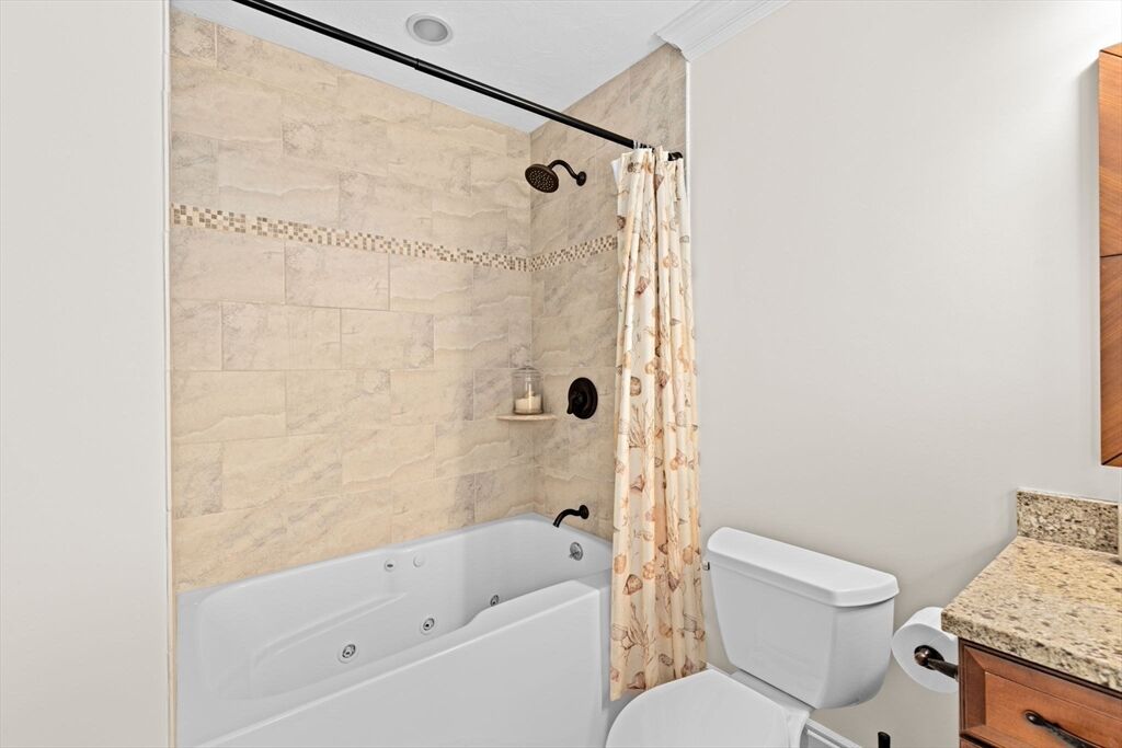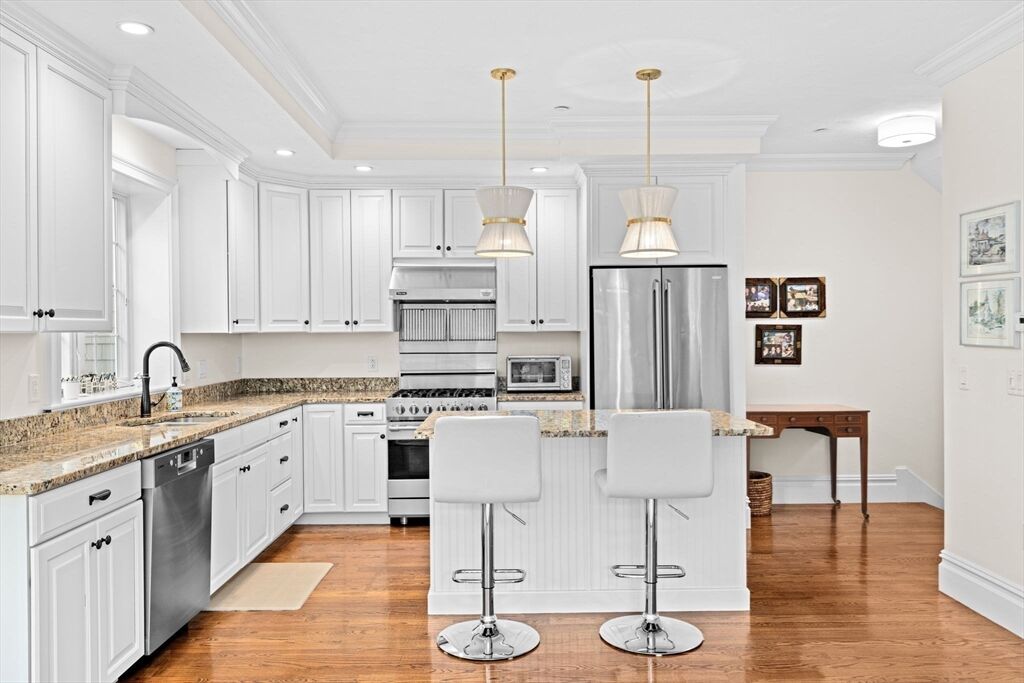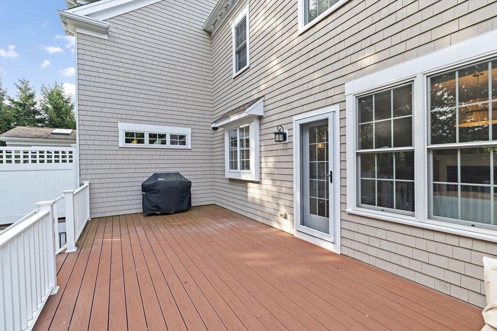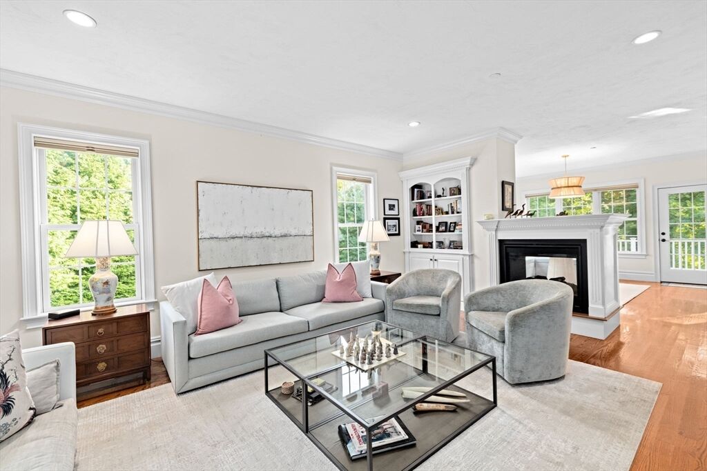 Prime Cohasset Village Location! This turnkey townhome combines quality craftsmanship with modern convenience. Highlights include hardwood floors throughout, 9’ ceilings, crown moldings, central AC, and a 2-car garage with storage. The open floor plan features a living room with a gas fireplace that flows into the kitchen and dining area—ideal for entertaining. Step out onto the large deck overlooking a private, landscaped yard. The upper level hosts a primary suite with a generous bathroom and walk-in closet, alongside a guest bedroom with its own full bath. Just a short stroll from shops, restaurants, the library, town pool, the South Shore Music Circus, and local fields. With Sandy Beach and the commuter rail only minutes away, this home offers the perfect coastal village lifestyle with the ease of low maintenance condo living.