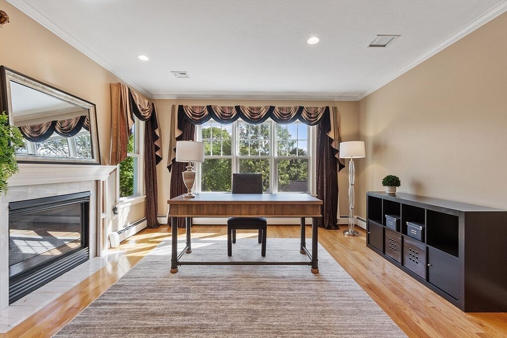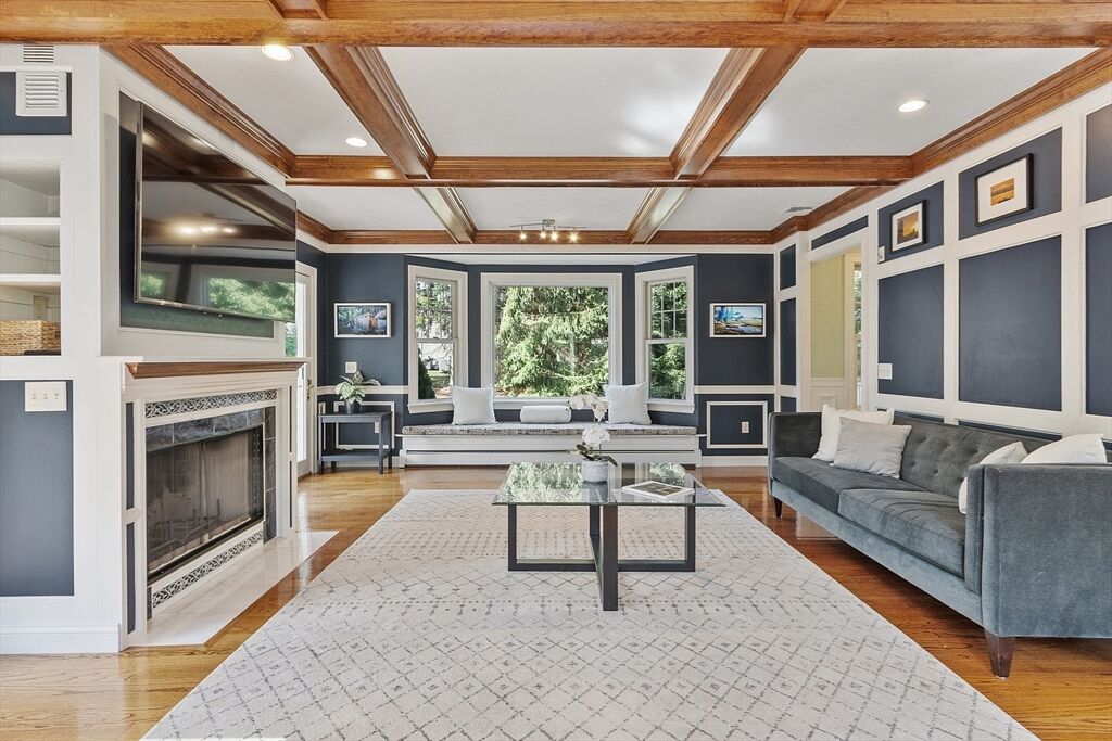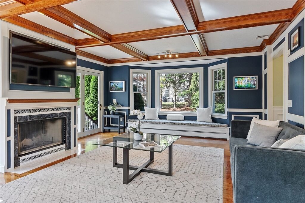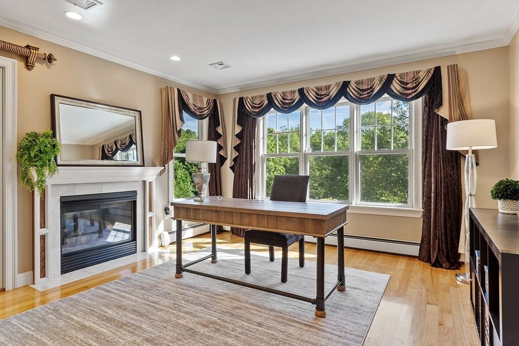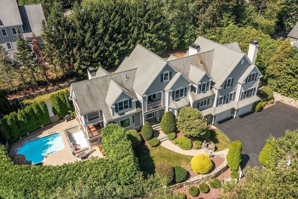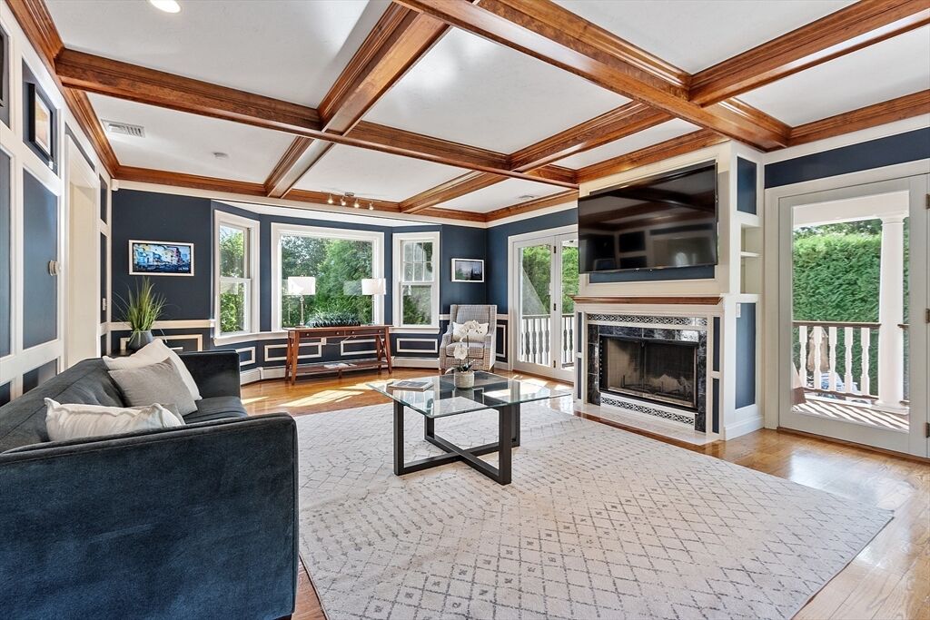 Spectacular describes this super-custom mint-condition builder’s home! Sundrenched with oversized windows, patio doors, and oval-glass entry doors, it boasts luxe features in every room. Elegant details include extensive moldings, coffered and tray ceilings, bay windows, and five fireplaces. The granite kitchen with range, wall oven, peninsula, pantry, and bay window opens to a fireplaced dining area in a seamless front-to-back layout. The living room, with coffered ceiling, bay windows, and fireplace, flows to the covered deck for easy indoor-outdoor living. The first-floor primary suite offers a tray ceiling, crown molding, private patio, and spa-like bath with tiled shower and Jacuzzi. A fireplaced study, dual laundry rooms, and glamorous foyer with glass doors and custom railings add function and flair. Upstairs are three bedrooms, two baths, Juliet balcony, and loft. The lower level features a media room with bar, exercise room, full bath, and sunroom overlooking a private pool.