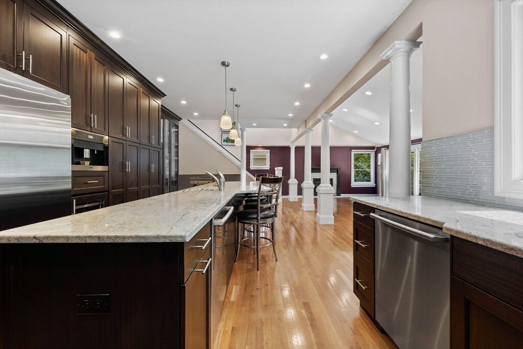 Located in a convenient commuter location and abutting West Newton's premier neighborhood, this home has been thoughtfully renovated throughout. The main level features a cook's dream kitchen! State of the art appliances include side by side full freezer/fridge, 5 burner/double oven range, 2 dishwashers, wine cooler + a Miele coffee station. So well planned, preparing food with family + friends is a delight! This space flows to the great room with its vaulted ceiling and fireplace creating seamless living + entertaining. Upstairs the primary bedroom features a spa bathroom w jacuzzi + a custom fitted walk-in closet. 2 more bedrooms + laundry complete this level. The flexible 3rd floor can be used as a bedroom suite, with its full bathroom and/or gym. The finished lower level adjusts to family needs endlessly. Newer systems. 2c garage. Large driveway for turn around--no need to back up onto the street. Minutes to Peirce School, West Newton Sq., Medical Center, Pike and Rail.