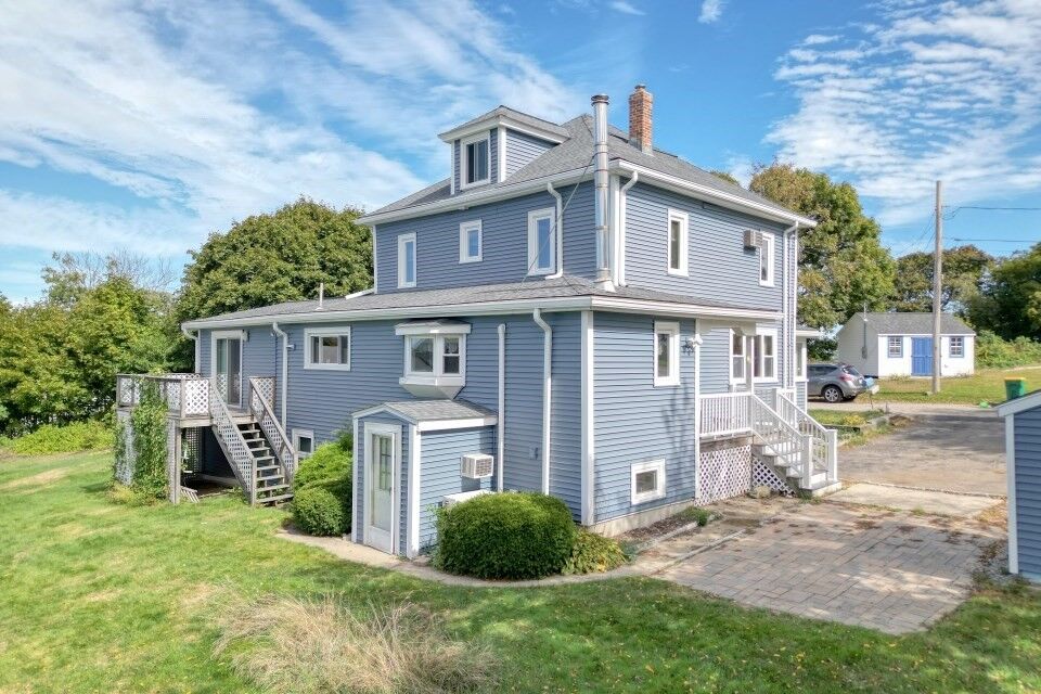Welcome ! This 6-bedroom, 3-bath Colonial offers over 2,500 sq ft of living space on a rare dead-end/0.37-acre lot in the desirable Whitehead neighborhood. This home offers character w/recent updates: AC, Newer Roof/Siding/Windows, New Heating, and hardwood floors throughout. Sun-filled rooms, a flexible layout, w/a bathroom on each level, a partially finished basement w/ large studio area, full bath, kitchenette and separate entrance, make this home both functional and inviting. 1st floor features electric blinds, wood stove & 2 bedrooms, while the 2nd floor has 3/4 bedrooms with a wet bar & extra fridge for essentials. Enjoy the bright enclosed sun porch & 2 decks/balconies that overlook the neighborhood. Outside, you’ll find two sheds as well as expansive yard space for gardening, play, or gatherings. Minutes from Hull’s beaches and coastline, with easy access to schools, shops, and Boston commuter options, this property offers the perfect South Shore lifestyle. Not in Flood Zone
