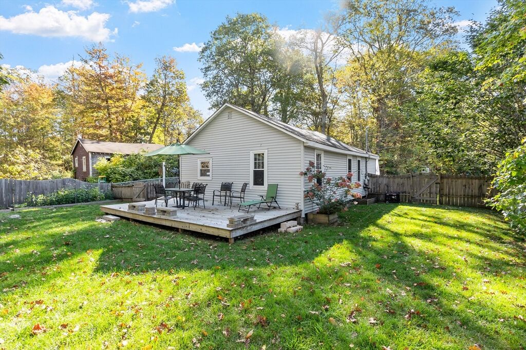 Welcome to 15 Athens Ave, a charming bungalow near the water! This cozy 2-bedroom, 1-bath home is just moments from a peaceful lakefront that includes deeded beach rights to a private beach. Inside, the open layout features a bright kitchen with a breakfast bar that flows easily into the main living space—perfect for everyday living and casual meals. Step outside to a private, fenced-in yard with a spacious deck and garden area, offering a relaxed setting to enjoy the outdoors. The perfect place to unwind and enjoy the serene surroundings. Offer Deadline: Highest and best offers due by Tuesday, October 14th at 12:00 PM.