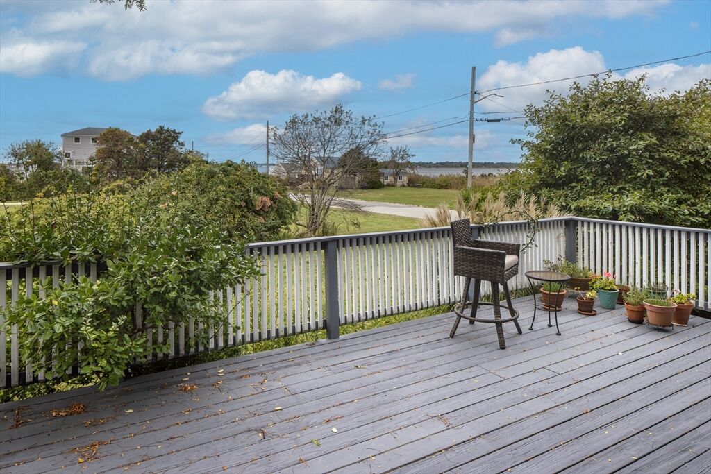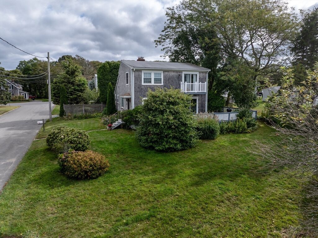 Charming 2-bedroom, 2 bath year-round cottage with water views and easy access to the beach at the end of the street. Enjoy the warmth of the wood burning stove in your cozy living room with its wood clad walls and wood floors. You’ll find sun-filled rooms in the open and airy living and dining spaces which flow into the efficient kitchen with its shaker cabinets, vaulted-ceiling with skylights, and open shelving. A small anteroom can do double duty as a first-floor guest room or is ideal for a home office set-up. Head upstairs to two bedrooms and a beautifully updated full bath. One bedroom has its own balcony with panoramic views and a cork floor, while the other large bedroom has newer berber carpet and water views as well. A good size yard has mature plantings and when you’re not gardening, relax on the porch and take in the view. This charming home offers close proximity to all the things that make Fairhaven so desirable – water access, beaches, shops, restaurants and more.