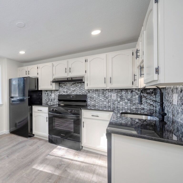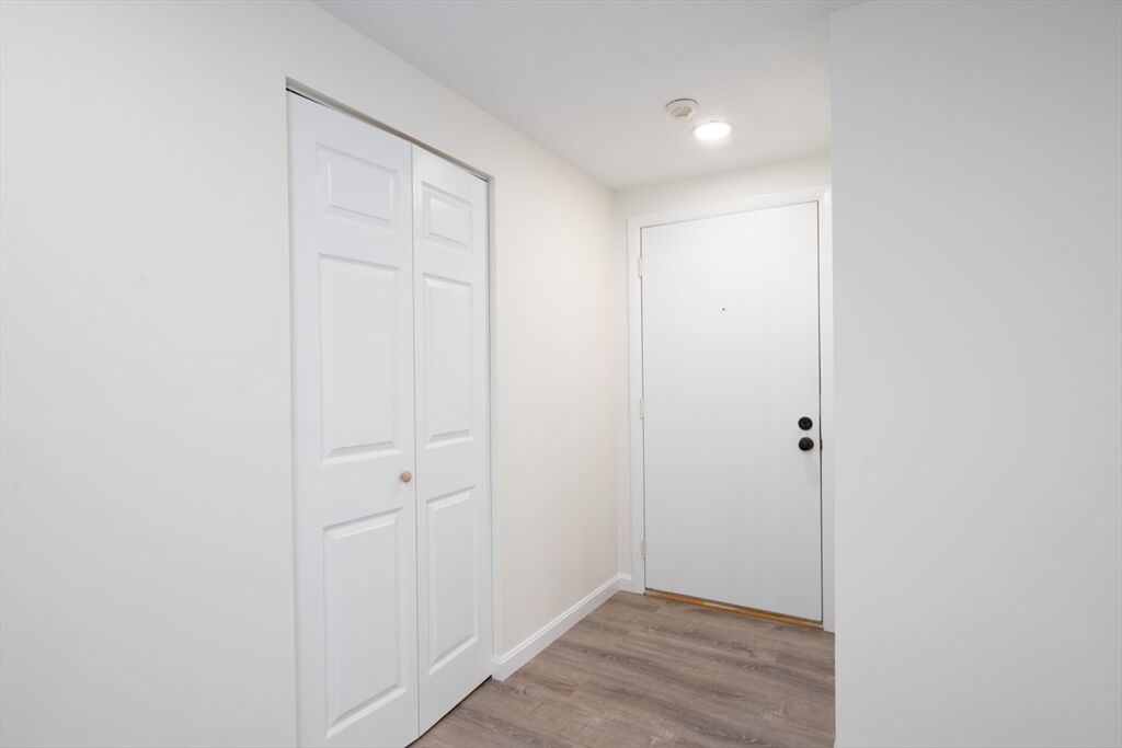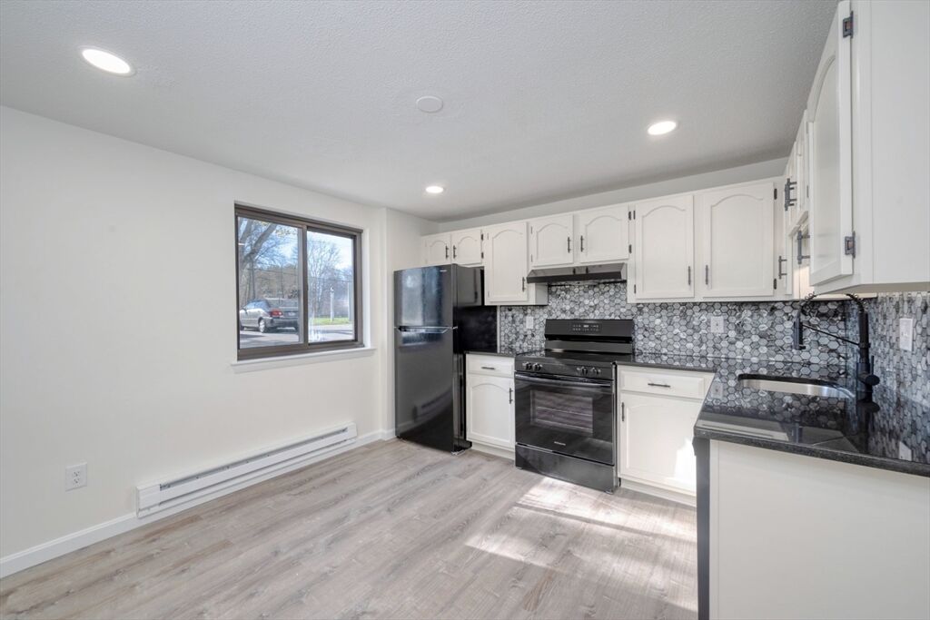 Conveniently located end unit just minutes from Route 24 and both Bridgewater and Brockton train stations. This updated condo features an eat-in kitchen with new flooring, granite counters, black appliances, and freshly painted cabinets and walls. New flooring and fresh paint continue throughout the unit for a clean, bright feel. The bathroom offers plank tile flooring, a white vanity, and a custom tiled walk-in shower with a seat and glass doors. Enjoy a spacious living area with glass sliders to a private covered patio overlooking the treed common lawn where outdoor grilling and a picnic area are available during the warmer months. Storage is plentiful with multiple closets plus a private, locked storage unit in the building. A common laundry room is conveniently located just down the hall. Talk about value - heat, hot water & electric are all included in the monthly fee, it's all newly renovated and the least expensive condo in Easton!