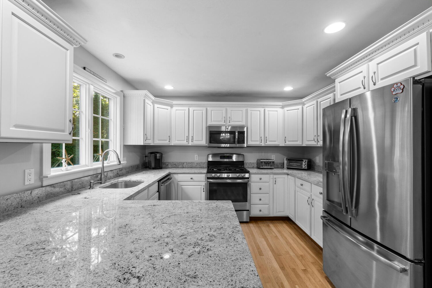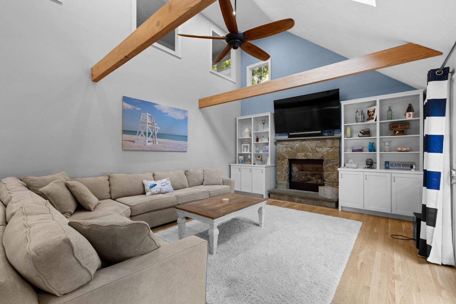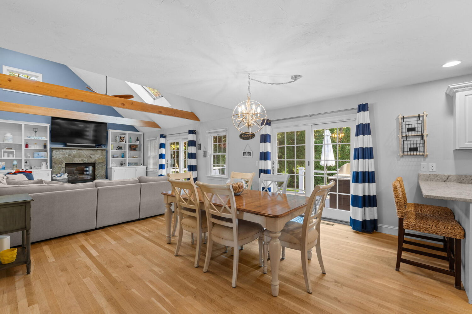 Welcome to 15 Old County Road, a beautifully updated 3-bedroom, 3.5-bath home in one of North Falmouth's most desirable neighborhoods. The open-concept living area features cathedral ceilings, hardwood floors, and a gas fireplace. The updated kitchen flows seamlessly into the dining and living spaces, while the first-floor primary suite offers a renovated bath and walk-in closet. Upstairs are two spacious bedrooms and a full bath. The finished lower level with full bath provides flexible living space for a media room, gym, or guests. Outdoors, enjoy a landscaped yard, deck, and built-in gas firepit--perfect for entertaining. Additional highlights include new central A/C, a beautifully finished garage with epoxy flooring, and proximity to beaches, bike path, and village amenities.