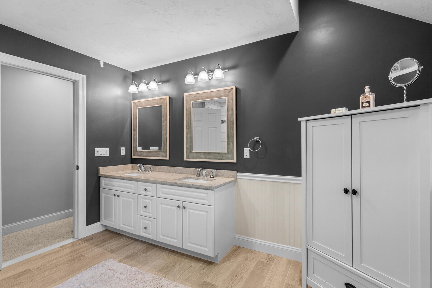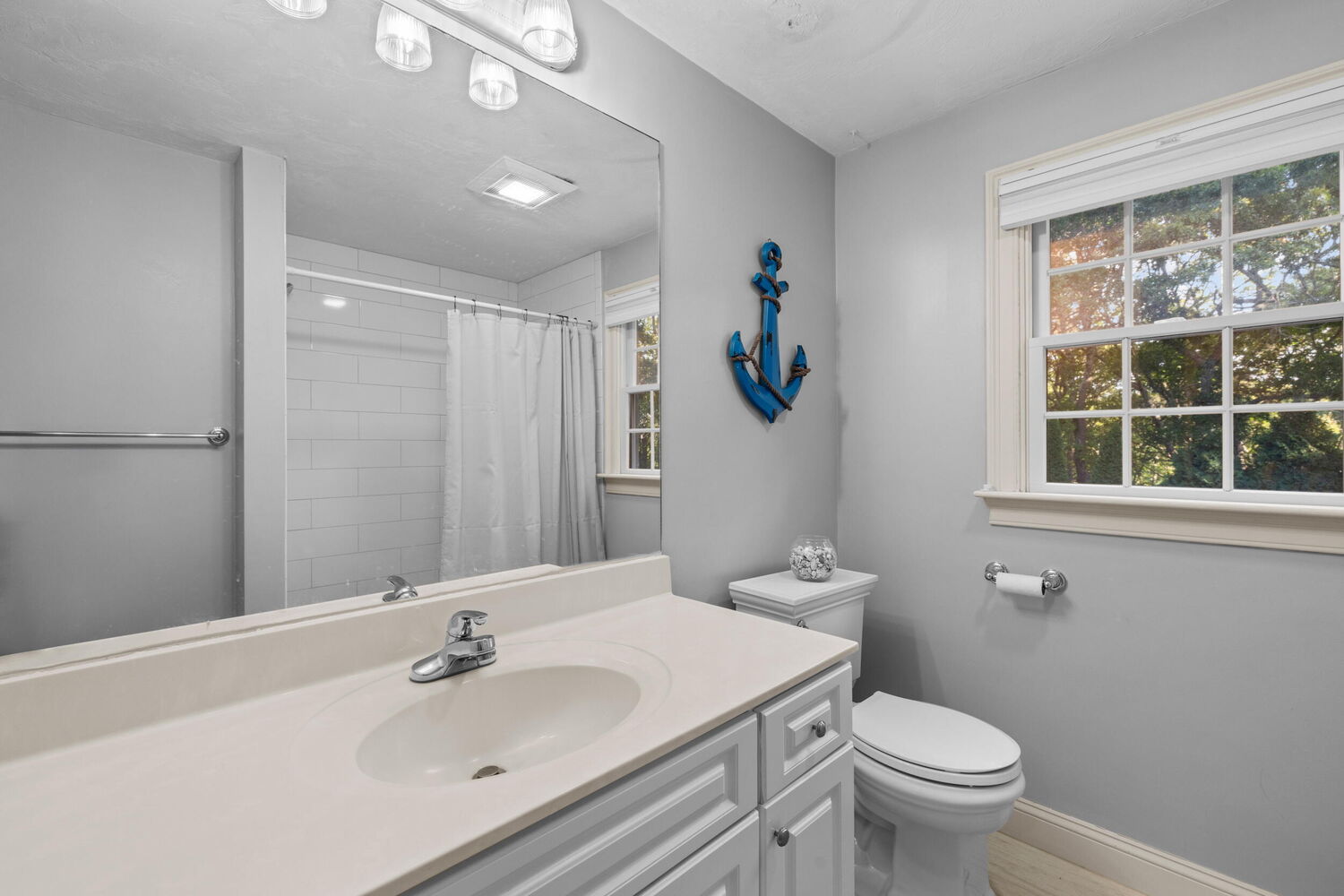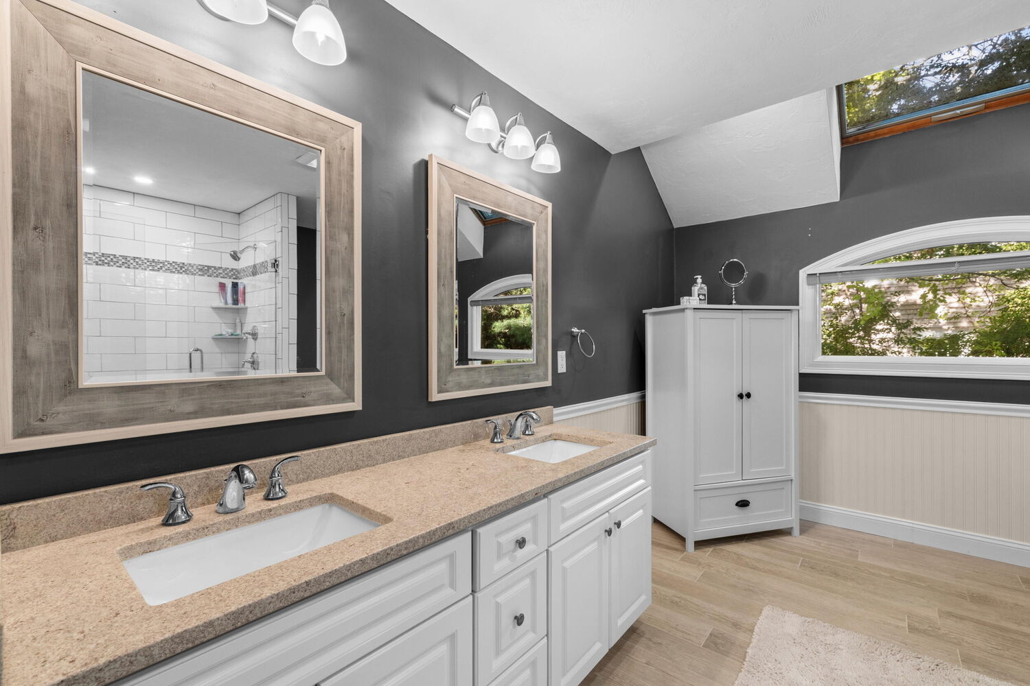 Welcome to 15 Old County Road, a beautifully updated 3-bedroom, 3.5-bath home in one of North Falmouth's most desirable neighborhoods. The open-concept living area features cathedral ceilings, hardwood floors, and a gas fireplace. The updated kitchen flows seamlessly into the dining and living spaces, while the first-floor primary suite offers a renovated bath and walk-in closet. Upstairs are two spacious bedrooms and a full bath. The finished lower level with full bath provides flexible living space for a media room, gym, or guests. Outdoors, enjoy a landscaped yard, deck, and built-in gas firepit--perfect for entertaining. Additional highlights include new central A/C, a beautifully finished garage with epoxy flooring, and proximity to beaches, bike path, and village amenities.