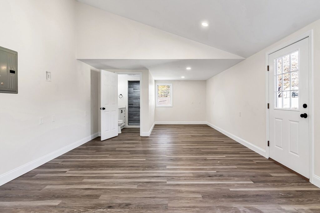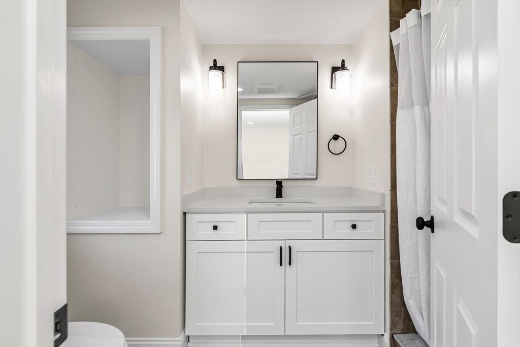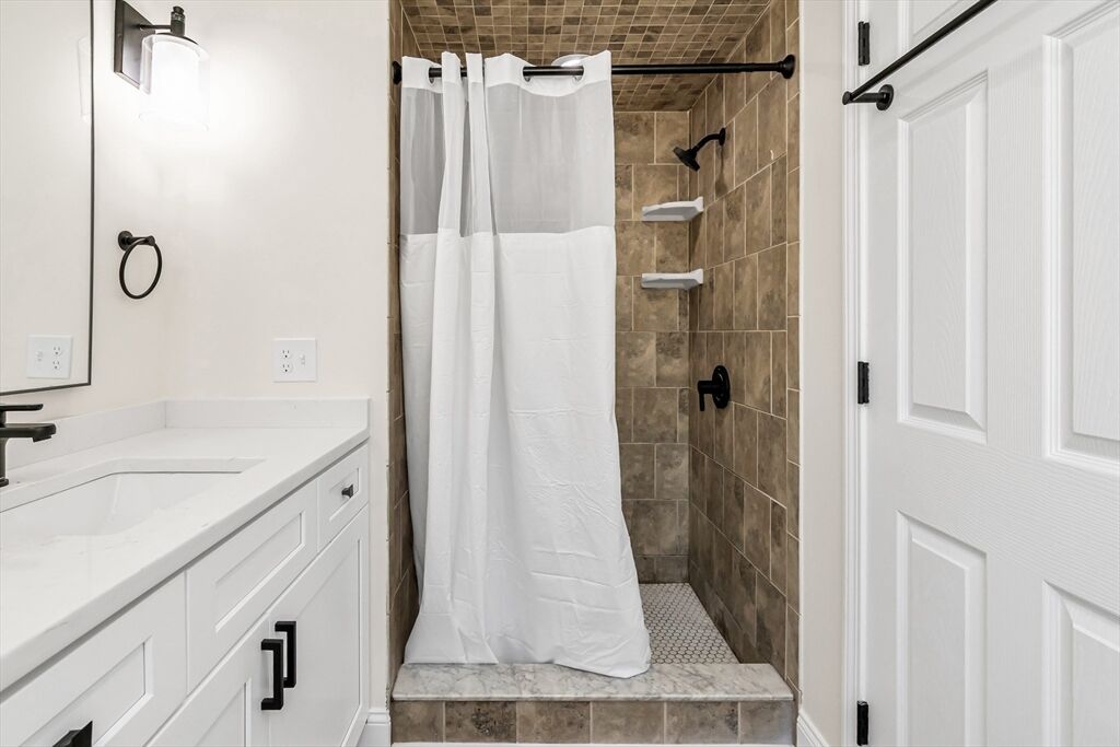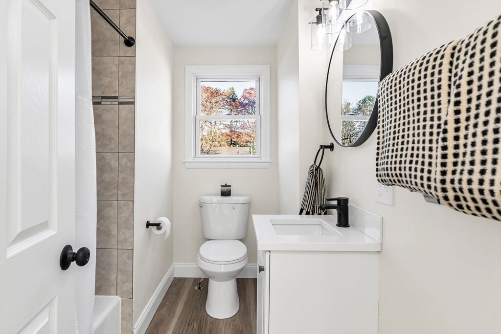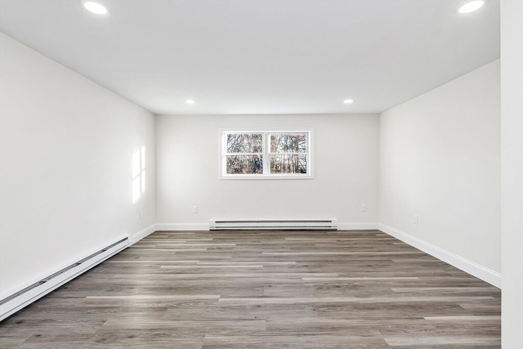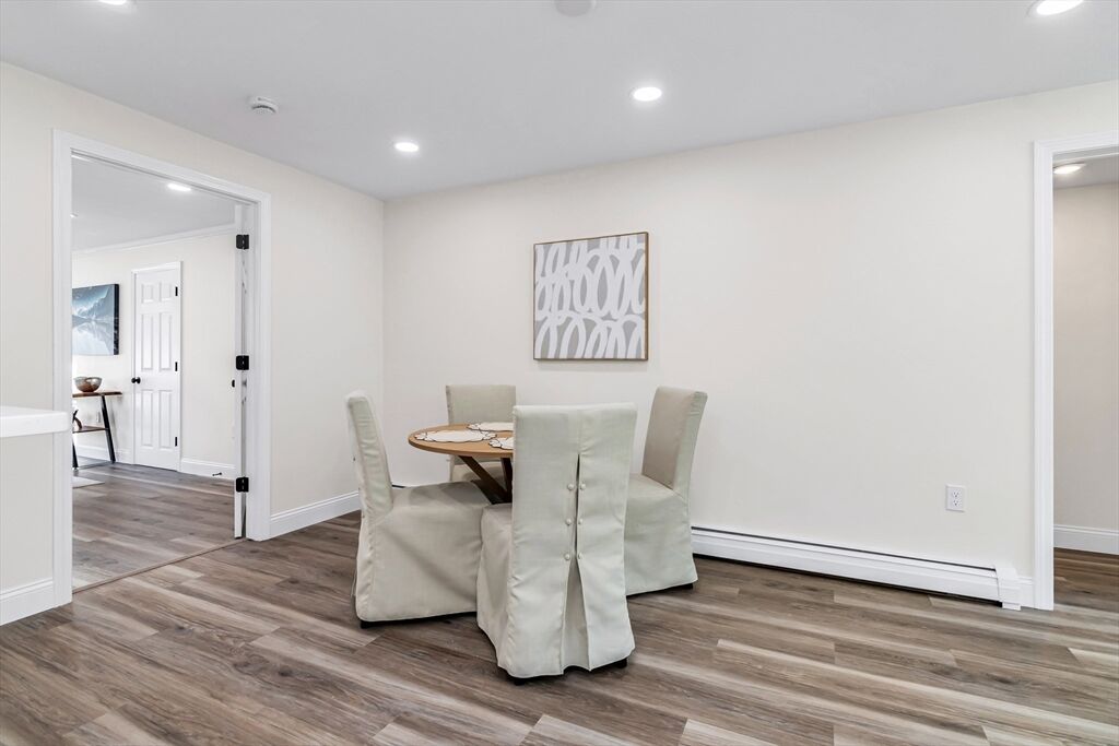 This fully renovated 4 bed 3 bath ranch offers modern style and versatility, including a spacious addition above the garage. The main level features all-new vinyl flooring, fresh paint, and a beautifully updated kitchen with quartz countertops, stainless steel appliances, and upgraded electrical and plumbing. The primary suite includes an updated bath and a sliding glass door that opens to the back patio. The main level also includes 2 additional bedrooms and a conveniently located bathroom. The finished lower level provides a large family room, laundry area, plus a bonus room perfect for a home office, gym, or guest space. The impressive garage addition offers a huge living area, a private bedroom, and a full bath—ideal for extended family, multi-generational living, or possible ADU. Conveniently located near shopping centers, downtown Tewksbury and minutes away from the highway. Delayed Showings until Friday 11/21.