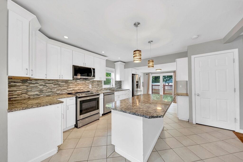Looking for more room to grow? This spacious 5-bedroom Colonial offers the flexibility and comfort your buyer needs! Tucked away on a dead-end street in Leominster, just minutes from the Mall at Whitney Field, downtown shops, and major routes, including I-190 and Rt. 2. The open-concept kitchen features updated cabinets, granite counters, tile backsplash, stainless steel appliances, and a large island flowing into the dining area with slider access to the deck—perfect for gatherings. A first-floor bedroom with backyard access and a full bath adds convenience. Upstairs offers three bedrooms, including the primary, plus a modern tiled full bath. The finished basement includes a fifth bedroom and/or office, a half bath, laundry, and a bonus room ideal for a play, family, or theater space. Enjoy a large fenced yard and storage shed—this home offers the space, comfort, and location you’ve been looking for! Don’t miss your chance—schedule your private showing today!