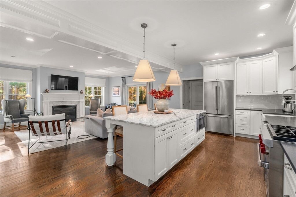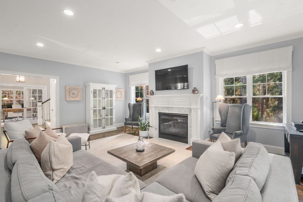 Set on a beautifully landscaped acre surrounded by nature, this 3,560 SF Colonial blends timeless design with modern comfort. Custom built in 2013, the home features 3/4 bedrooms, 3.5 baths, and a versatile floor plan for everyday living and entertaining. The main level offers a sun-filled home office, eat-in kitchen with high-end finishes, a walk-in pantry, all opening to a family room with fireplace, plus formal dining room. The second level features a spacious, light-filled primary suite with a spacious walk-in closet and a spa-like bath with soaking tub and double vanities. Two additional generous bedrooms share a full bath, and a third-floor bonus room with a full bath provides flexible living space and a guest room. An added bonus is the wonderful hiking trail leading to the Charles River for the boating enthusiasts! This home combines a great design along with luxury, and New England charm. Excellent commuting location! Close to Needham, Dedham and two trains.