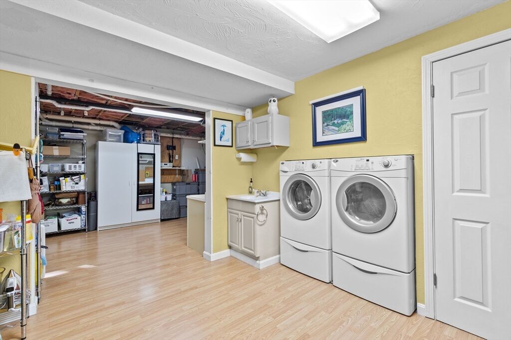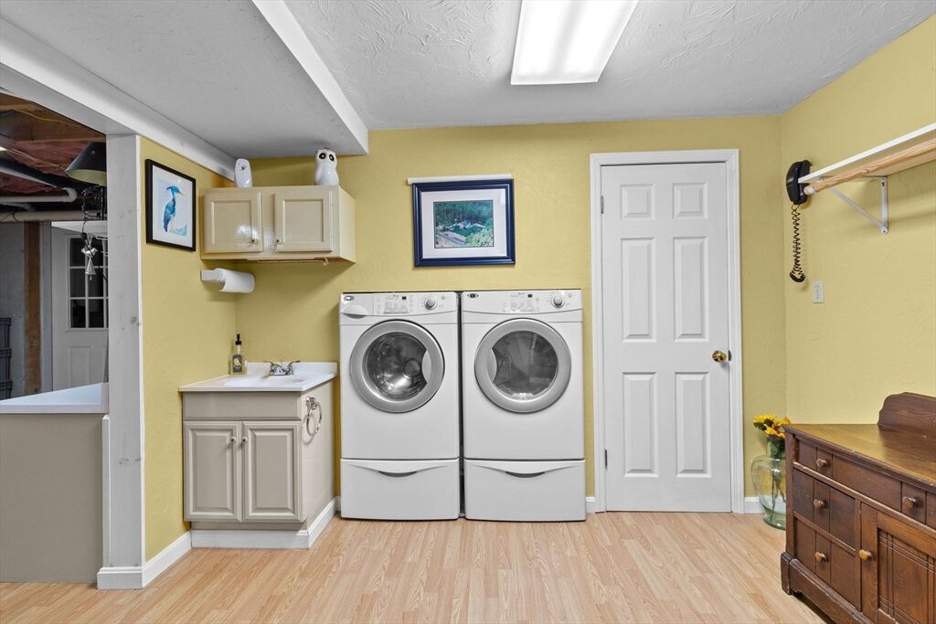 | Laundry | Closet/Cabinets - Custom Built Flooring - Laminate Electric Dryer Hookup Washer Hookup Sink In Basement |