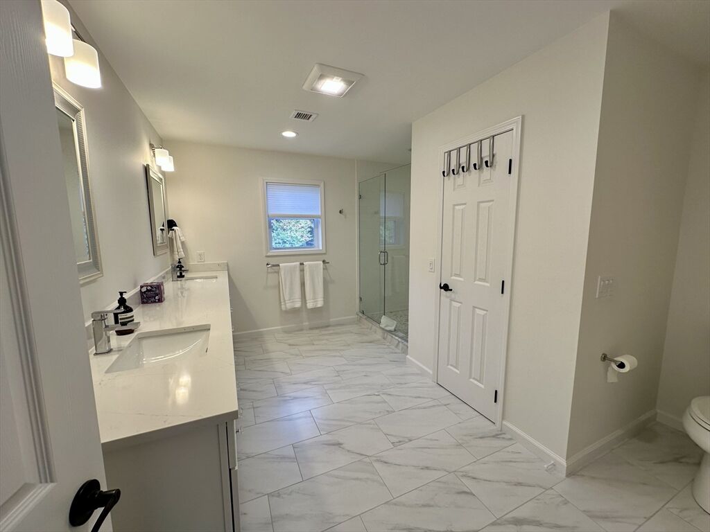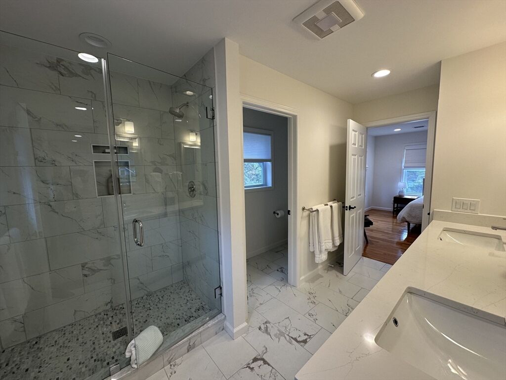 The Colonial Style home with wrap around porch is beautifully maintained and nicely sited on almost a half acre. The first floor is thoughtfully designed and offers an open floor plan that includes an ample mudroom with half bath and is just off the side porch that takes you into the well equipped kitchen with a center island, stainless appliances, custom cabinetry and dining room with sliders to a peaceful and private deck. Living room offers a comfortable space for TV and relaxing. There is also nice size first floor primary with walk-in closet and spacious en-suite bathroom. The grand entryway takes you to the second floor which offers a second primary bedroom with walk-in closet and en-suite bath. There are two guest rooms that share bath and second floor laundry. Wood and tile floors throughout, propane FHA with A/C. The walkout basement offers almost 10' of ceiling height and is ready to be finished off for additional living space, workshop or office.