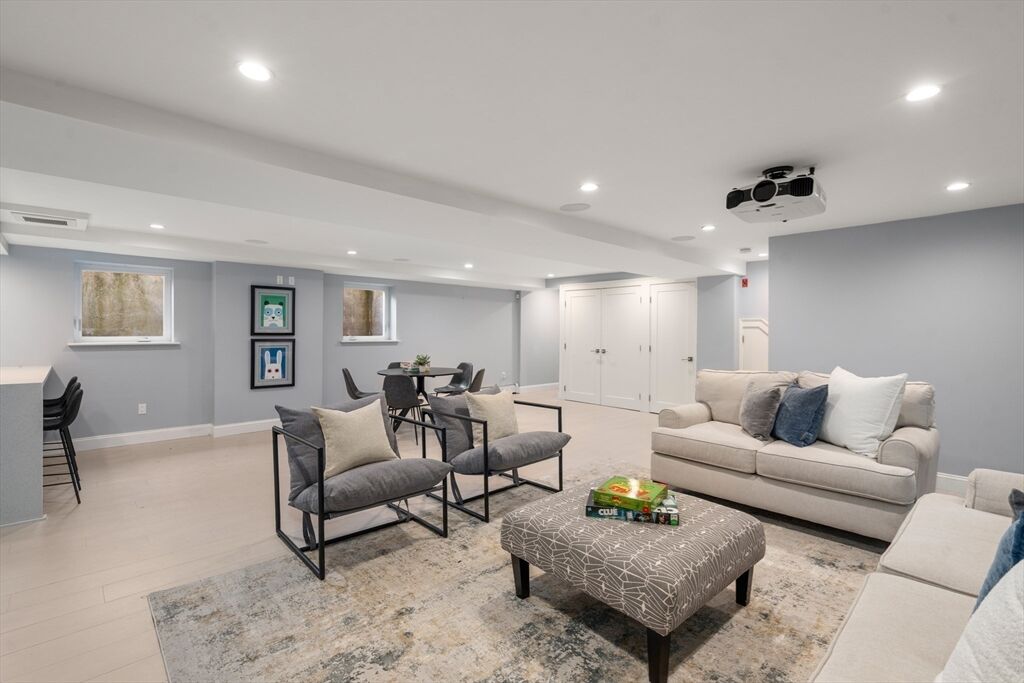 Move right into this pristine center entrance colonial in desirable Oakley Country Club area convenient to Cambridge and Boston. This renovated 4 bedroom 3 bath home is surrounded by exterior porches, stone walls, patios and a gorgeous outside kitchen. There is even a wraparound porch for your enjoyment! The interior is ideal for entertaining showcasing a chef's kitchen with gas cooking, stainless appliances with adjacent dining room and access to the patio. There is also a large living room with fireplace, office/den all with great light and a powder room. The primary bedroom suite has a custom walk in closet and private bath. There are also 2 more bedrooms and a bath on the second floor. The top floor offers a fourth bedroom or bonus room. There is a beautiful family room with wet bar and home theater in lower level along with laundry, a full bath and added storage and access to your 2 car garage. This is a special home you will cherish!