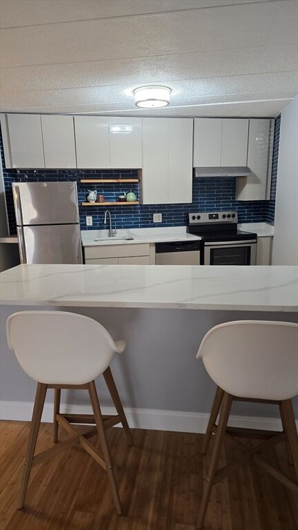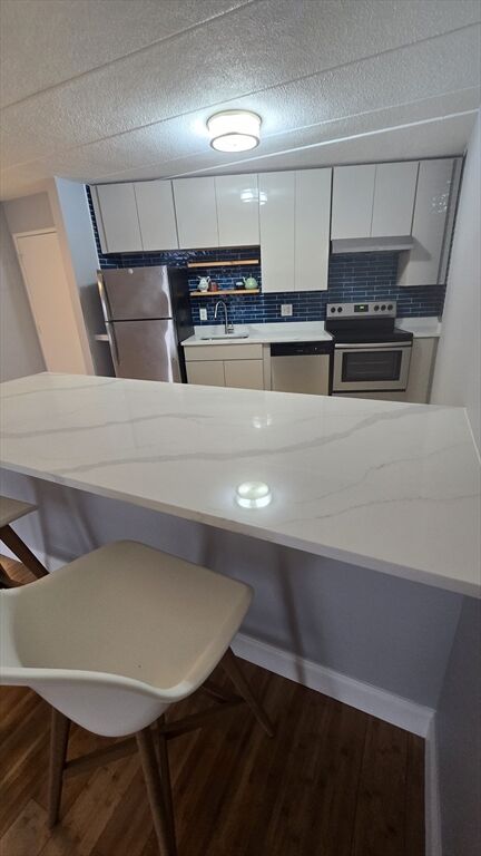 Welcome to this updated open concept condo in the desirable Crestview Condos complex located in the sought after town of Holliston, known for great schools and its quaint downtown. Nothing to do but move your things in. This unit boasts of recent updates to the kitchen including brand new quartz counters, an oversized counter 8' x 3' to dine at., plus freshly painted walls, trim and ceiling, also brand new are the dishwasher, kitchen sink and faucet. Prior updates in last 5 years include new kitchen cabinets, SS appliances total bath remodel with marble floors / walls, vanity, sink, tub, wood and tile flooring thru out. This unit offers a large bedroom with fabulous walk in closet. Laundry is conveniently on the same floor a few yards away. Great private pool and pool house that was updated a few years back. The open floor plan offers the buyer a chance to design to their preference. nice quiet complex located in a family neighborhood. the kind of place you would not know it existed