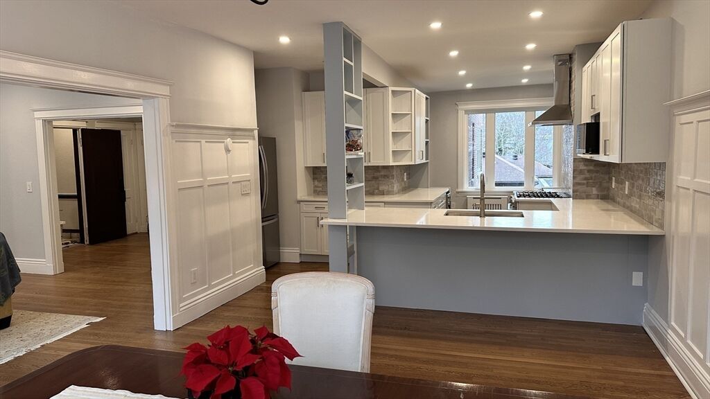 Beautifully, newly renovated 1850 square ft 3-bedroom, 2-1/2-bath condo with 9 foot ceilings, open layout, with great exposure to natural light with deeded garage parking. Extensive renovation including new plumbing , electrical, central air conditioning, windows, fixtures, stainless steel appliances and quartz counters. Many closets including two walk-ins, plus a 130 sq. ft storage unit in the basement First floor unit looking into well-kept garden in front; sloped site puts bedrooms at second floor level at the rear. Shared outside garden/patio space in the back with gas grill. Apartment is in a fabulous location in a professionally managed building within walking distance to the wonderful restaurants and shops in Coolidge Corner and Washington Square. Short walk to Trader Joes and Whole Foods. Green line is right out the front door with quick access to Downtown Boston. OPEN HOUSE Saturday 12/6 1-3pm Sunday 12/7 11am - 2pm