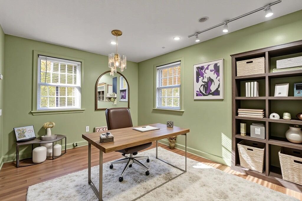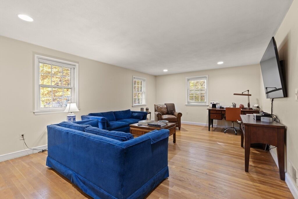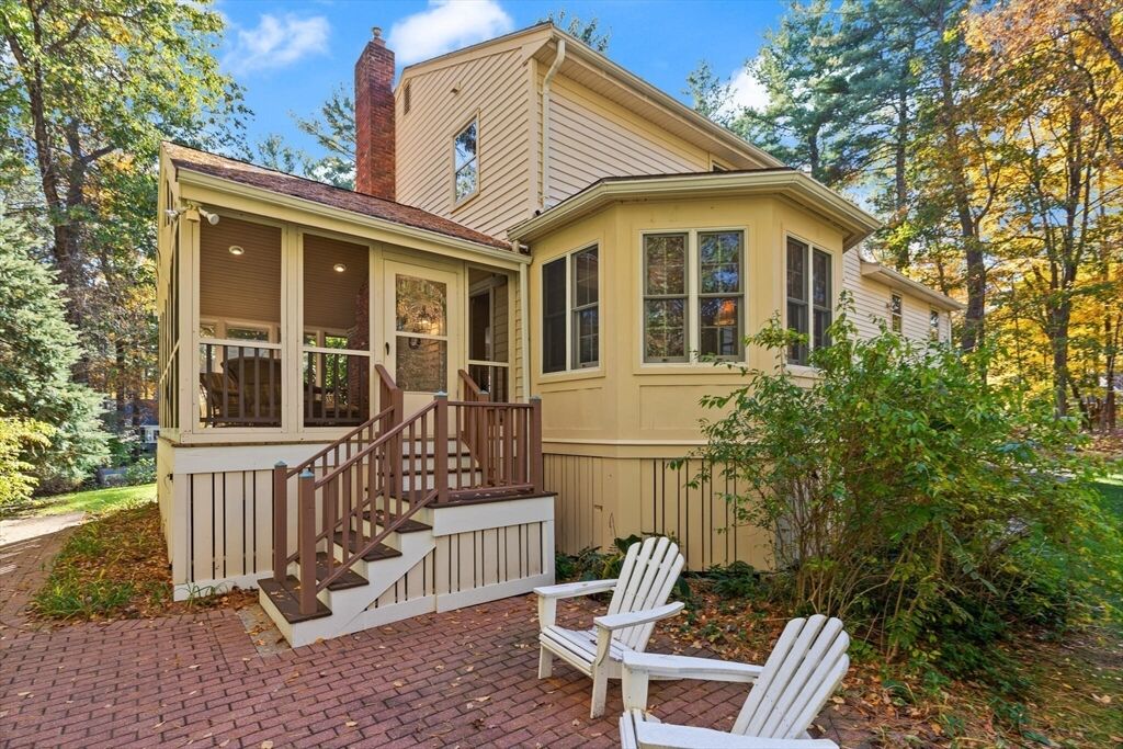This lovely colonial-style residence combines traditional and contemporary elements, with spacious rooms and beautiful custom millwork detail. A sun-filled living room greets you upon entry and flows effortlessly to an elegant dining room and peaceful screened porch, perfect for enjoying sights and sound of nature. The sleek kitchen is equipped with solid wood cabinetry and leads to a convenient mudroom and garage. The flexible floor plan offers spacious rooms, wood flooring throughout including four bedrooms and two and a half, tiled bathrooms. as well as a dedicated home office and 2nd floor laundry room-both highly sought-after features. The lower-level family room is ideal for play and exercise, and the expansive, level lot is adorned with specimen trees and plantings. This wonderful home is situated in a desirable neighborhood, close to the Concord line and just minutes from Haynes Elementary School, and the commuter rail in nearby Lincoln & Concord. A truly special property.