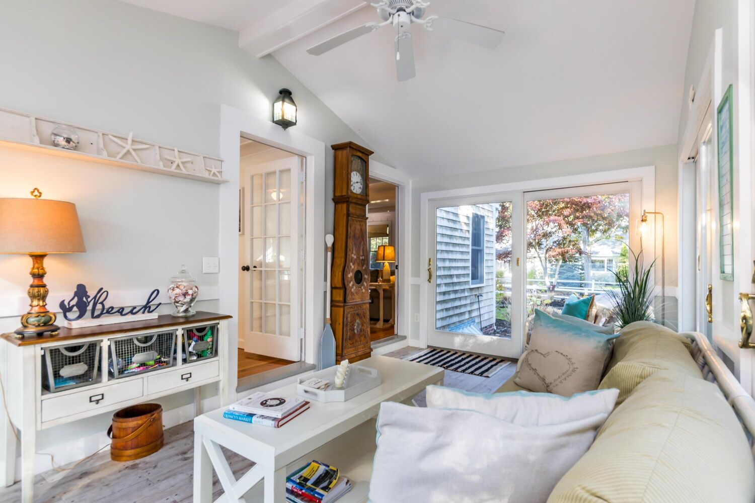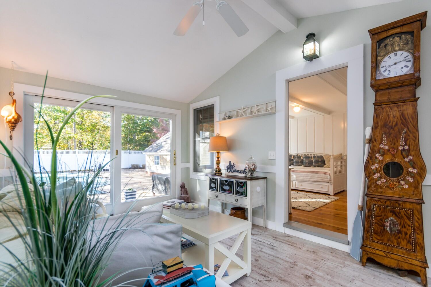Arriving beneath the tree-lined canopy is like passing through the famed monkeypod tunnel on Maui's Honoapiilani Highway--a graceful, almost cinematic approach that lets you know you're at the beginning of something extraordinary. Set beneath mature trees and just 0.3 miles from the sandy shores of Nantucket Sound, this classic Cape Cod home blends architectural heritage, thoughtful updates, and resort-style outdoor living to create a truly special retreat. Built in 1929, this home is one of the very first in the neighborhood--a rare, early example of Cape Cod Revival architecture, when homes were designed to honor early New England forms while embracing modern life. Once owned by John Quincy Jr., a direct descendant of Edmund Quincy and author of Quincy Market: A Boston Landmark, the home carries a distinguished connection to Massachusetts history. Spanning 2,034 square feet with four bedrooms and two full baths (one on each level), the home embodies the enduring appeal of traditional Cape architecture. Throughout the first floor, wide-plank pine floors, beamed ceilings, and wainscoting create a sense of warmth and timeless craftsmanship. At the heart of the home lies an expansive living and dining area, anchored by a wood-burning fireplace, a gracious gathering space that flows seamlessly into the sun-splashed 10' x 17' solarium. With windows on three sides, the scent of the sea drifts softly through, infusing daily life with the rhythms of the nearby coast. The kitchen opens directly to the patio and outdoor dining area, encouraging an easy indoor-outdoor flow. A first-floor bath with laundry adds practicality, while a cozy daybed nook offers a quiet spot to retreat with a book. Upstairs, hardwood floors, stained glass details, and a renovated bathroom speak to thoughtful stewardship honoring the home's historic soul while meeting modern needs. Outdoors, the property transforms into a private sanctuary. An in-ground pool serves as the centerpiece of the backyard, surrounded by mature plantings and privacy fencing. The brick patio offers multiple lounge areas, a firepit for cool Cape evenings, and a large outdoor shower that perfectly captures the essence of beach living. The two-car garage doubles as a workshop, with wood-trimmed ceilings and a built-in worktable ready for creative pursuits or coastal adventures. For those who love the water, the location is unparalleled. Allen's Harbor Marine Service is just two minutes away by car, providing quick and easy access for boat owners who want to keep their vessels nearby. With Nantucket Sound practically at your doorstep, the possibilities for sailing, fishing, and coastal exploration are endless. Located in one of Harwich's most desirable neighborhoods, this property balances serenity with accessibility, just a short stroll to the beach and moments from Harwich Port's vibrant village center, with its boutiques, marinas, and beloved restaurants. This is more than a house; it's a sanctuary with soul, a legacy property that offers architectural integrity, coastal lifestyle, and a sense of place that's increasingly rare. All parties to verify information herein.