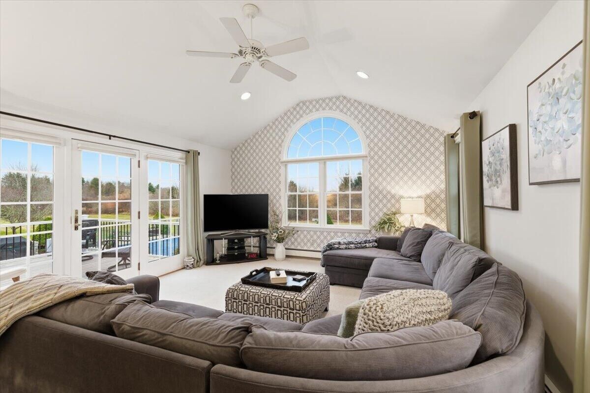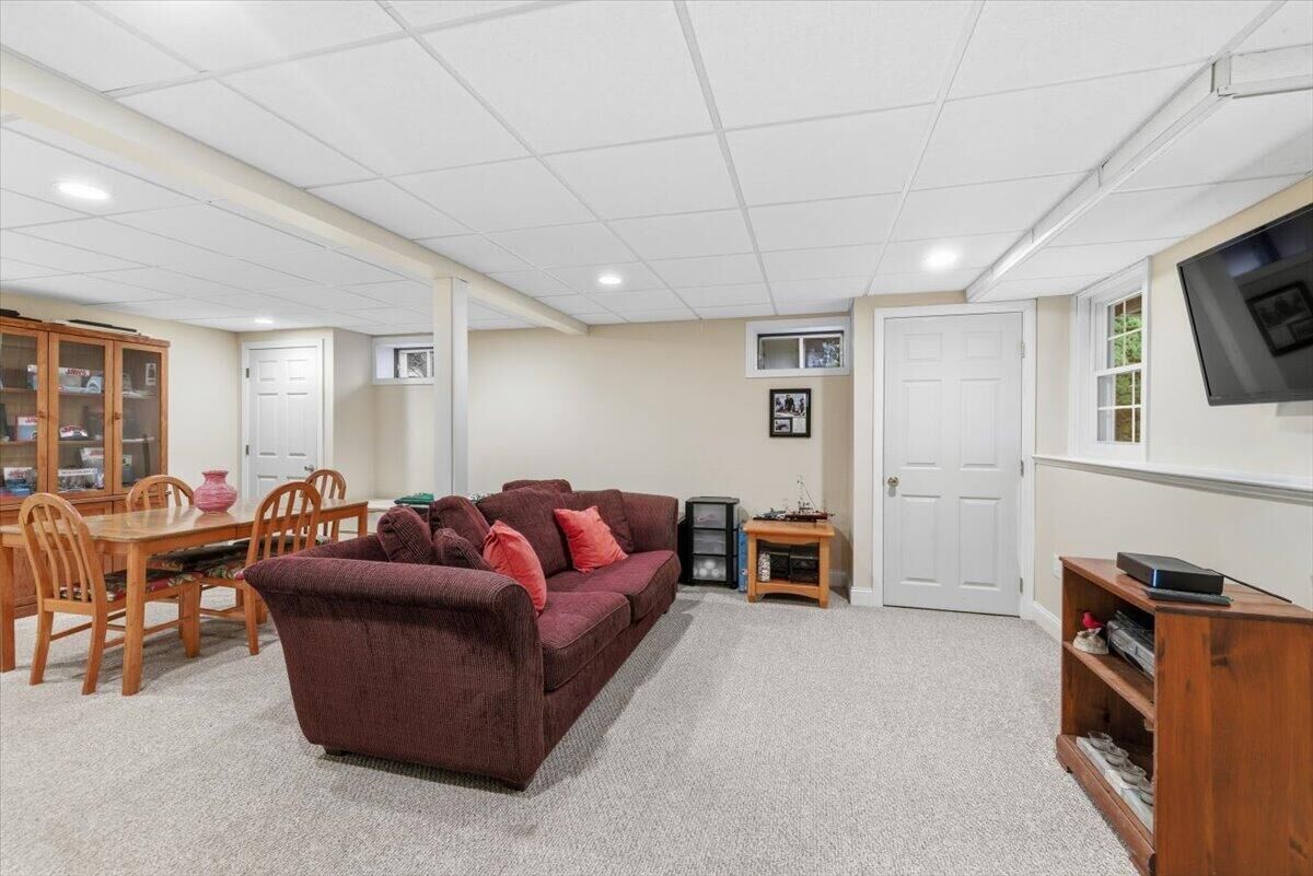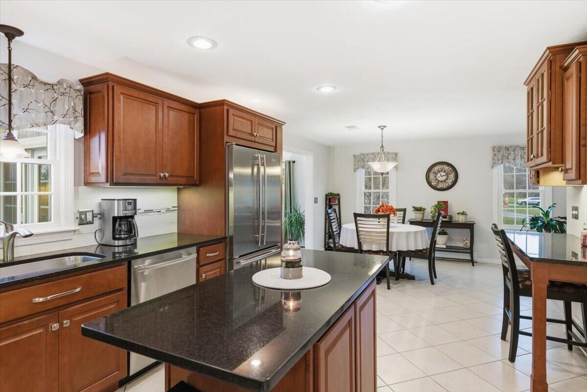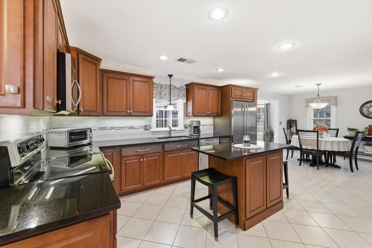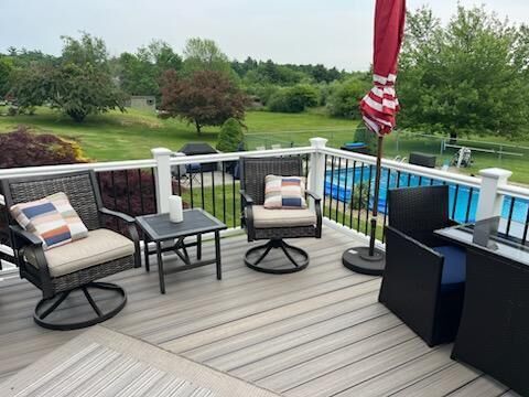Welcome home to this beautifully maintained 3 bedroom Cape set on over an acre of picturesque land. The inviting farmers porch welcomes you as you pull up the oversized driveway. Step in to the convenient tiled mudroom with large coat closet, leading you to the newer eat-in kitchen offering beautiful maple cabinets, with accent lighting and backsplash, granite countertops, and stainless steel appliances. The inviting spacious living room is highlighted by striking palladium windows that fill the space with natural light. The first floor is complete with a dedicated sitting room and dining room. Upstairs you will find 3 spacious bedrooms and a full bath. A partially finished basement offers even more flexibility for a home office, playroom, gym or den. Step outside to a private backyard showcasing a brand-new composite deck, a dedicated grilling station, and a refreshing in-ground pool, perfect for summer parties and outdoor enjoyment. This home truly checks all the boxes!