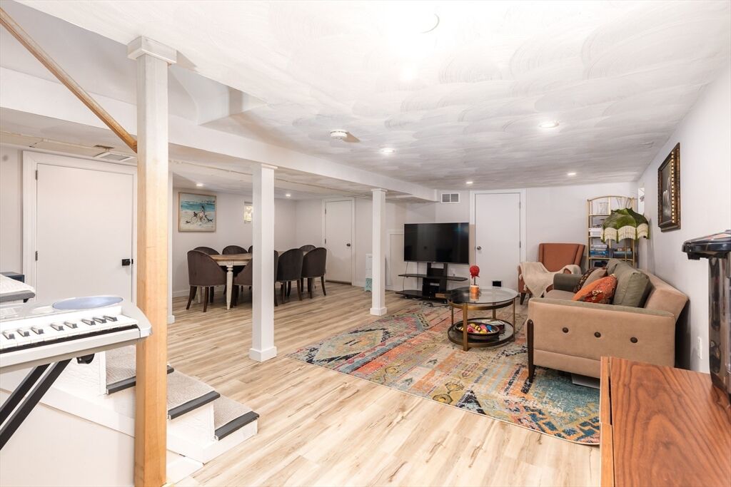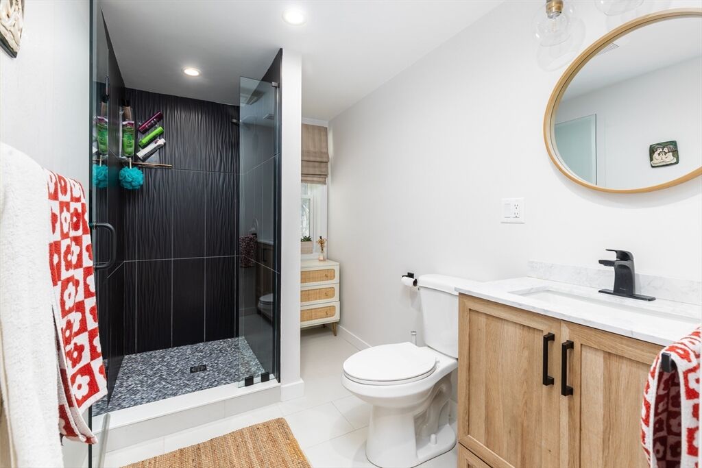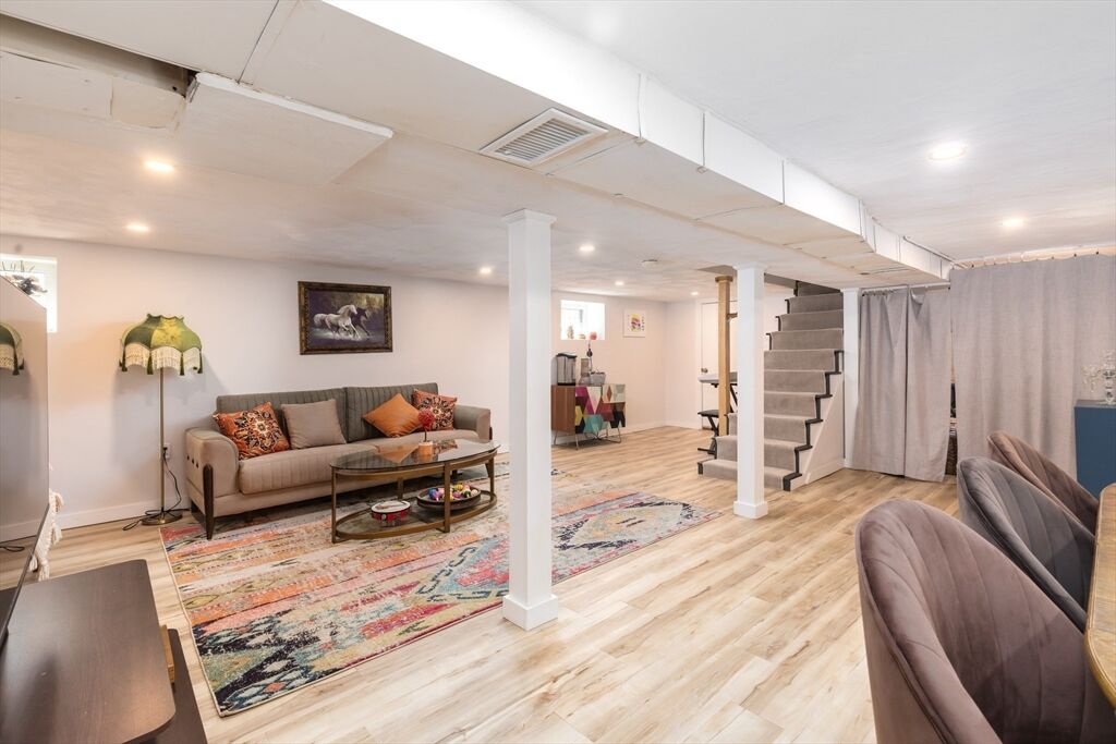 Discover refined living in this thoughtfully renovated home just minutes from Lincoln, the Cambridge Reservoir, Route 95, Gann Academy, and Brandeis University. The brick first floor offers excellent insulation and energy efficiency, complemented by two separate heating and cooling zones for year-round comfort. Inside, European-style finishes enhance the space, which includes a custom home office with a handcrafted bookcase and an open-concept kitchen and living area featuring stainless steel appliances, quartz countertops, and modern fixtures. Stylish hardwood floors on the main level, premium laminate upstairs, and waterproof tile in the finished basement provide both elegance and durability. Additional highlights include fully updated plumbing, electrical, HVAC, roof, and windows; a bright 3-season sunroom with forest views; a detached 2-car brick garage; and ample storage throughout the home.