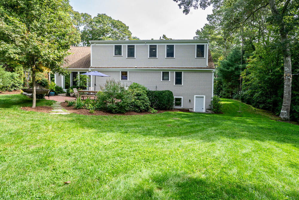 Spacious light filled Cape with expanded upper level suite and new custom kitchen. Perfectly perched on private oasis in the center of Osterville Heights with easy access to south side beaches and Osterville Village. Timeless historic granite hardscape with mature trees and gardens frame the ideal patio setting to unwind and relax with hot tub and outdoor shower. Flexible layout with vaulted ceiling in main floor living with 2 bedrooms and 2 baths. Walk out lower level entertainment space, guest room/den with natural light. Tankless high efficient boiler for heat and hot water. Rarely does a turn key home of this caliber come on the market in this price and location.