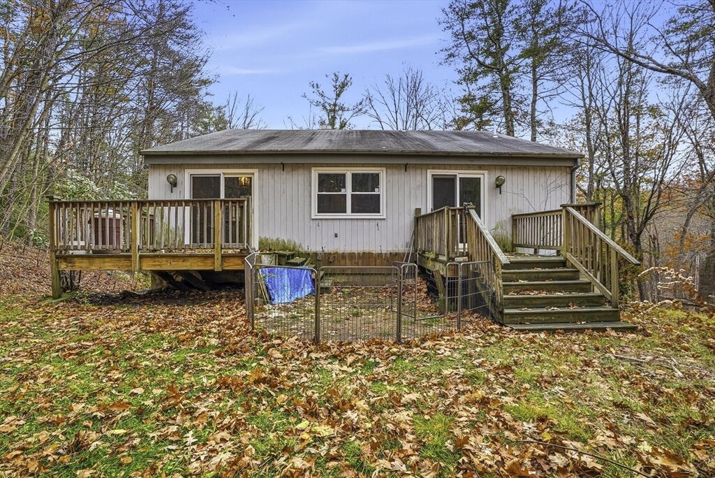 BEST & FINAL DUE Mon. 11/10 at 12PM. Set atop a hill on over 4.5 acres, this contemporary 1 BR, 2 full bath, 2 garage home offers privacy surrounded by nature. Inside the open floor plan & lower-level bonus rooms offer flexibility and the possibility for expansion. The updated windows & sliding glass doors fill the home with sunlight. Enjoy the New England seasons from the spacious front & back decks perfect for relaxing or entertaining. While the home would benefit from updates, it is a wonderful opportunity to add your own touch and make it your own. If you enjoy the outdoors, the Mass Central Rail Trail, Lilac Hedge Farm, & Wachusett Mountain. USDA eligible.