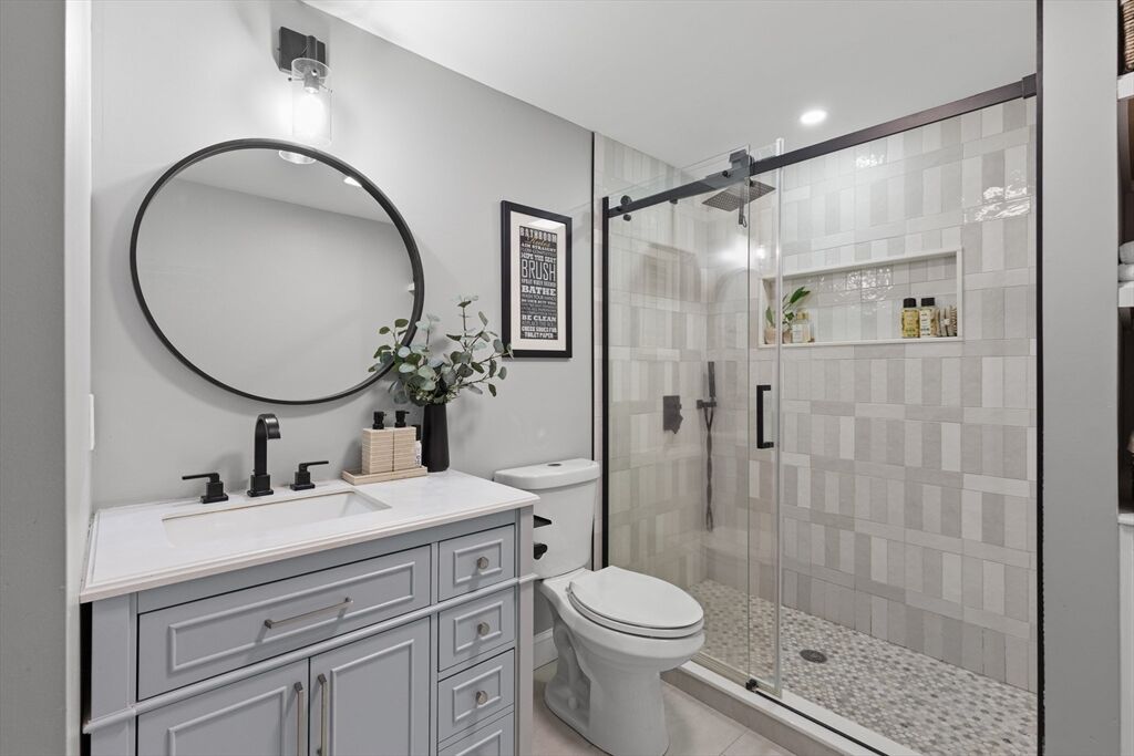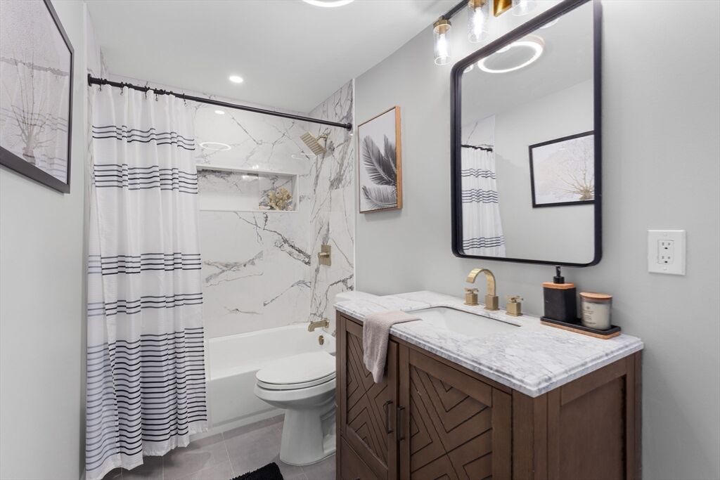 Beautifully renovated 5-bedroom, 2-bath home offering modern comfort and turnkey living. Renovated in 2022, this property features an open layout, bright four-season sunroom, expansive paver patio, and updated windows and doors. Inside, enjoy a stylish modern kitchen with Carrara Venatino Quartz countertops, a large island, refreshed bathrooms, new flooring, fresh paint, and spacious bedrooms—including double walk-in closets in the main suite. Major upgrades include new HVAC systems, plumbing, electrical, insulation, and a tankless hot water heater. The home also offers a dedicated laundry room and a second living area on the lower level. Move-in ready and thoughtfully remodeled throughout. Only 1.5 miles away from Patriot Place where you will find shopping and entertainment.