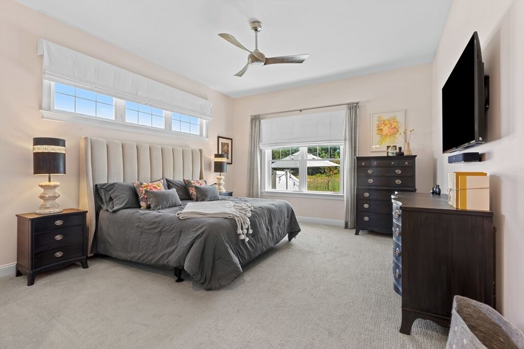 Welcome to The Village at Canter Brook Farm, Hamilton’s premier 55+ community. This detached single-family style townhouse offers the perfect blend of luxury, comfort, and convenience. Designed for easy first-floor living, the home features a private primary suite with a beautifully appointed bathroom, complemented by an open-concept kitchen, dining, and living area. High-end finishes and thoughtful details create a warm, inviting atmosphere. A sun-drenched sunroom, charming study/library and a half bath complete the main level. Upstairs, a spacious family room loft is ideal for movie or game nights. Also featured is a generously sized second bedroom, full bath, and a semi-finished bonus room for hobbies or storage. Outside, impeccably landscaped grounds frame a private patio, creating an inviting setting for outdoor enjoyment. All of this is set within a tranquil, pastoral community designed for an active, maintenance-free lifestyle with modern comfort and timeless New England charm!