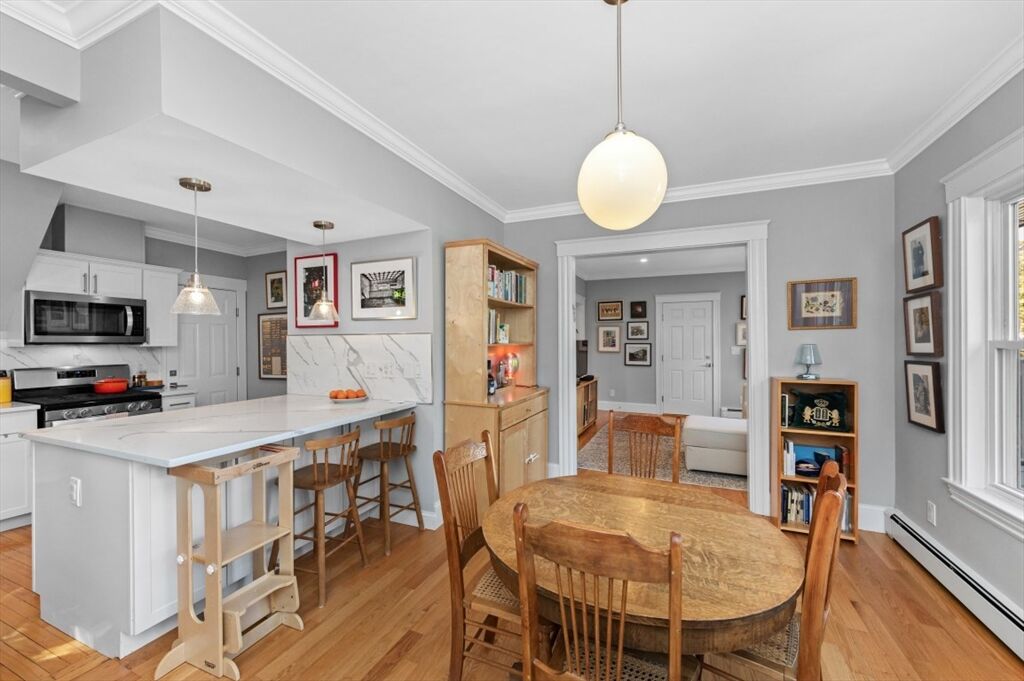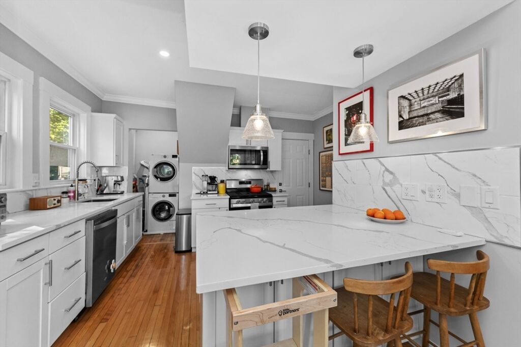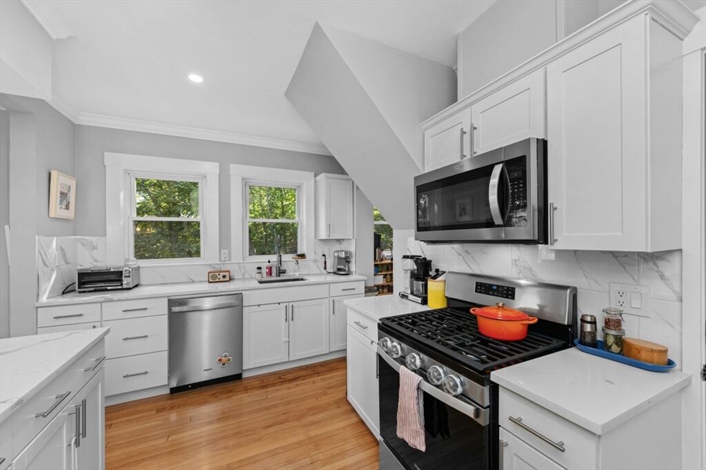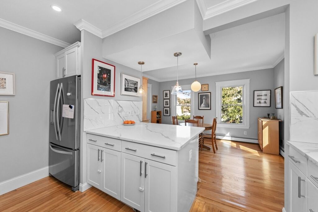Beautiful sun filled condo in Newton Upper Falls. The building was totally renovated and converted to condos in 2021. Features included a large living room, dining room, open concept kitchen with modern shaker-style white cabinets, quartz countertops, new stainless steel appliances, beautiful hard wood floors, fully insulated in 2021, Navien on demand hot water system, exclusive use of the lovely porch, additional basement storage, and in unit washer/dryer. This condo feels spacious with three bedrooms and two full bathrooms. Beautiful finishes throughout accentuate the charm and character of a well-built home. The location is excellent! 2 minute walk to Elliot Green Line Station, short walk to Emerson Playground and the new Trader Joe’s. Come take a look. You’re going to love this condo! Open house Saturday 12:00 – 1:30 and Sunday 12:30 – 2:00.