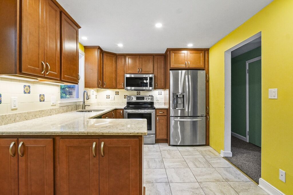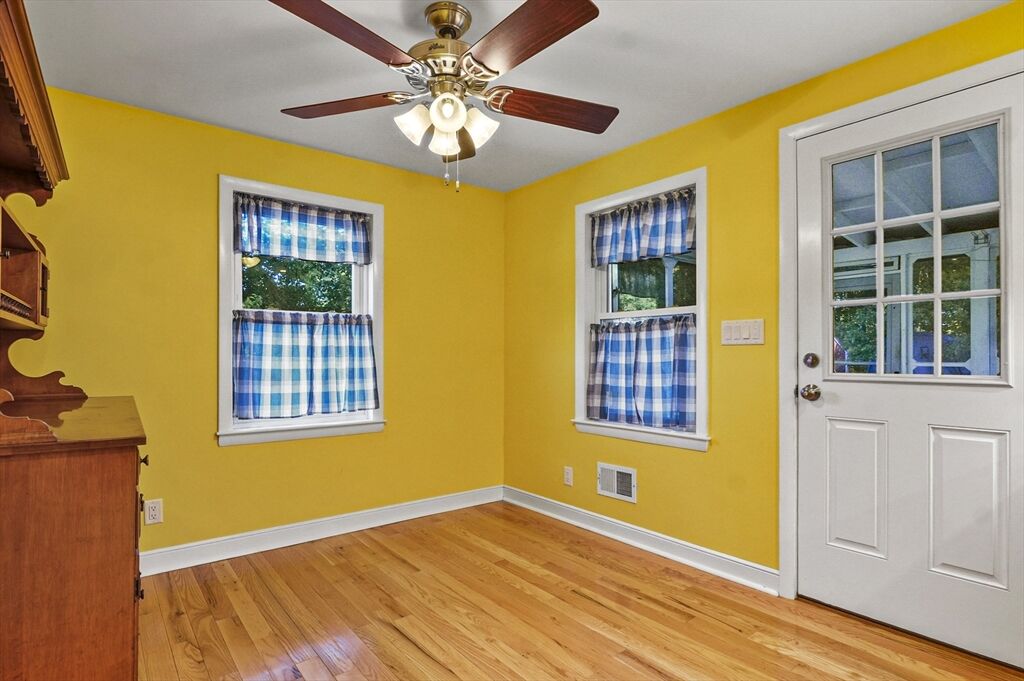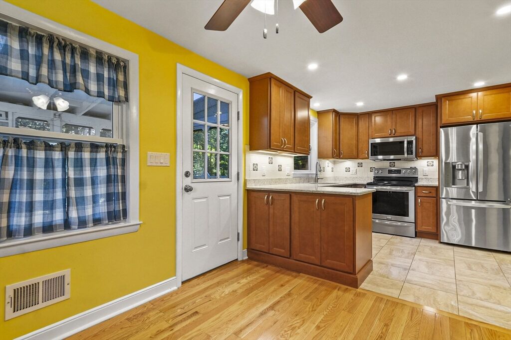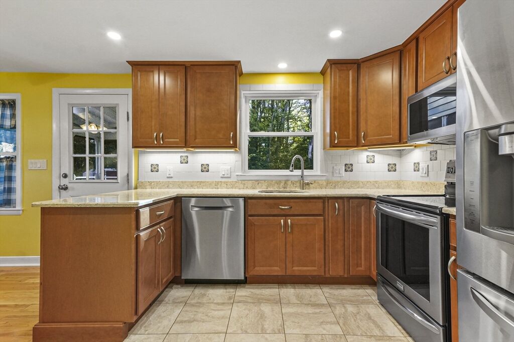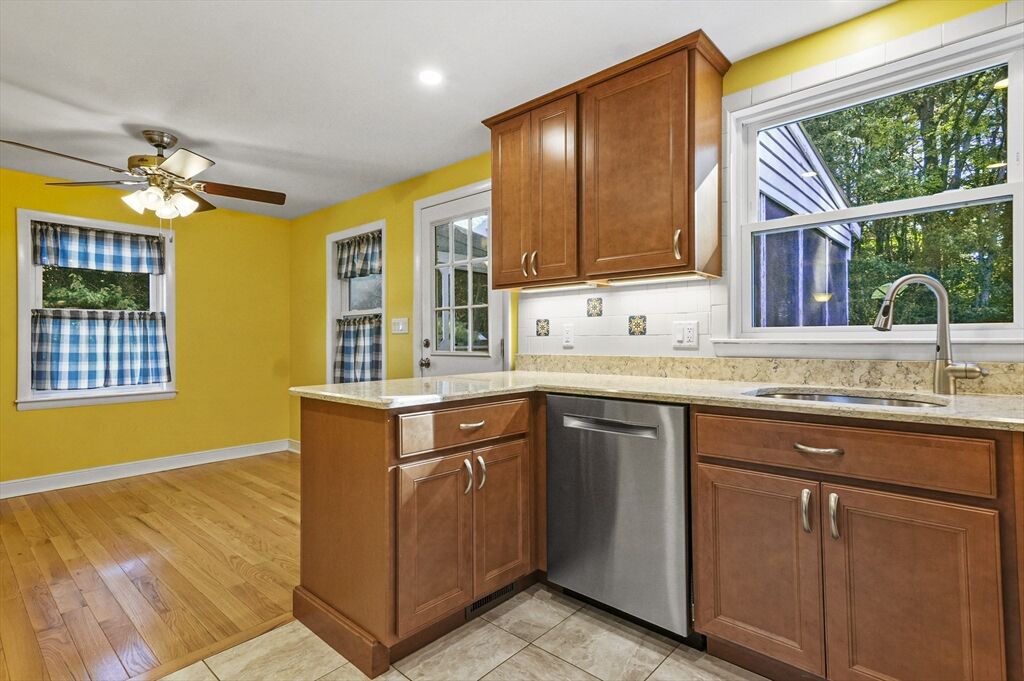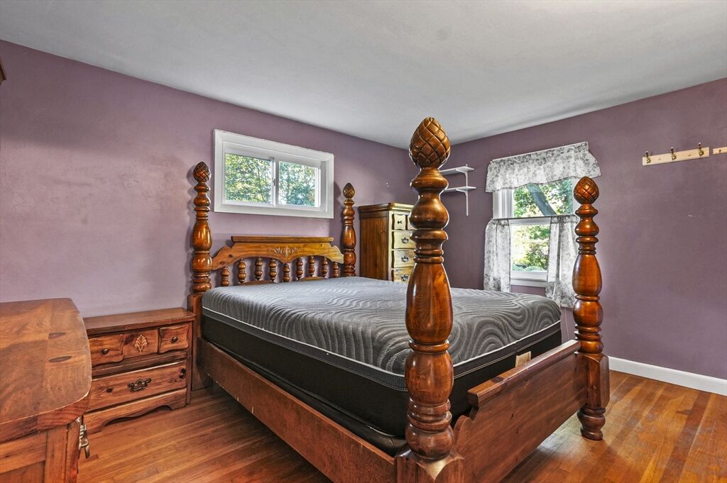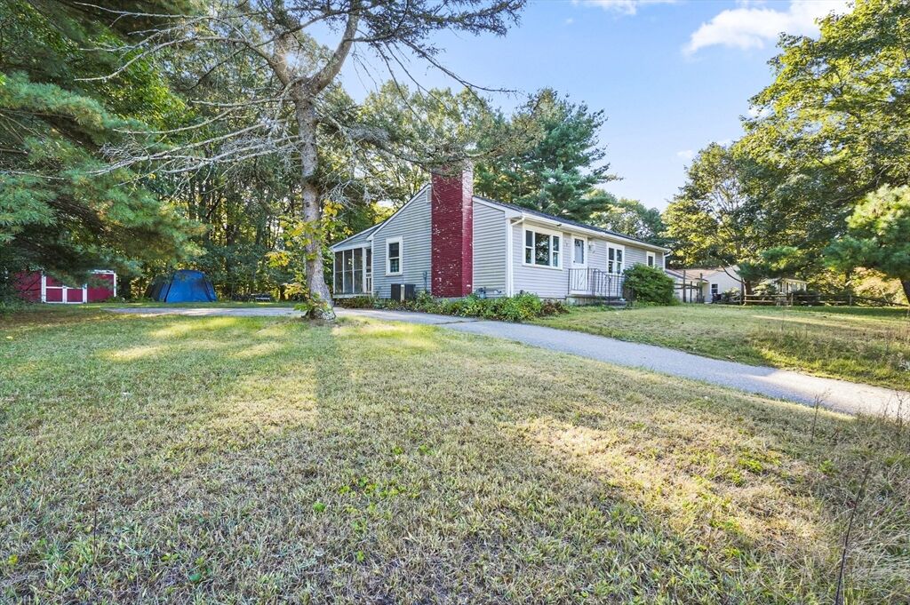 Welcome to this charming ranch-style home! The inviting living room features a cozy fireplace and a bay window that fills the space with natural light. The spacious kitchen is equipped with stainless steel appliances, ample countertop space, and an adjacent dining area with direct access to the covered back porch—perfect for seamless indoor/outdoor entertaining. Down the hall, you’ll find three bedrooms, each with hardwood floors, along with a full bath. The partially finished lower level with a versatile bonus room, offering endless possibilities for a family room, home office, or hobby space. Head outside to relax on the covered back porch overlooking the tree-lined backyard with a storage shed. Moments to Littleton schools! Tucked away in a quiet setting yet just minutes from Route 495, this home is truly a commuter’s dream! Don' miss your chance to make this house YOUR home!