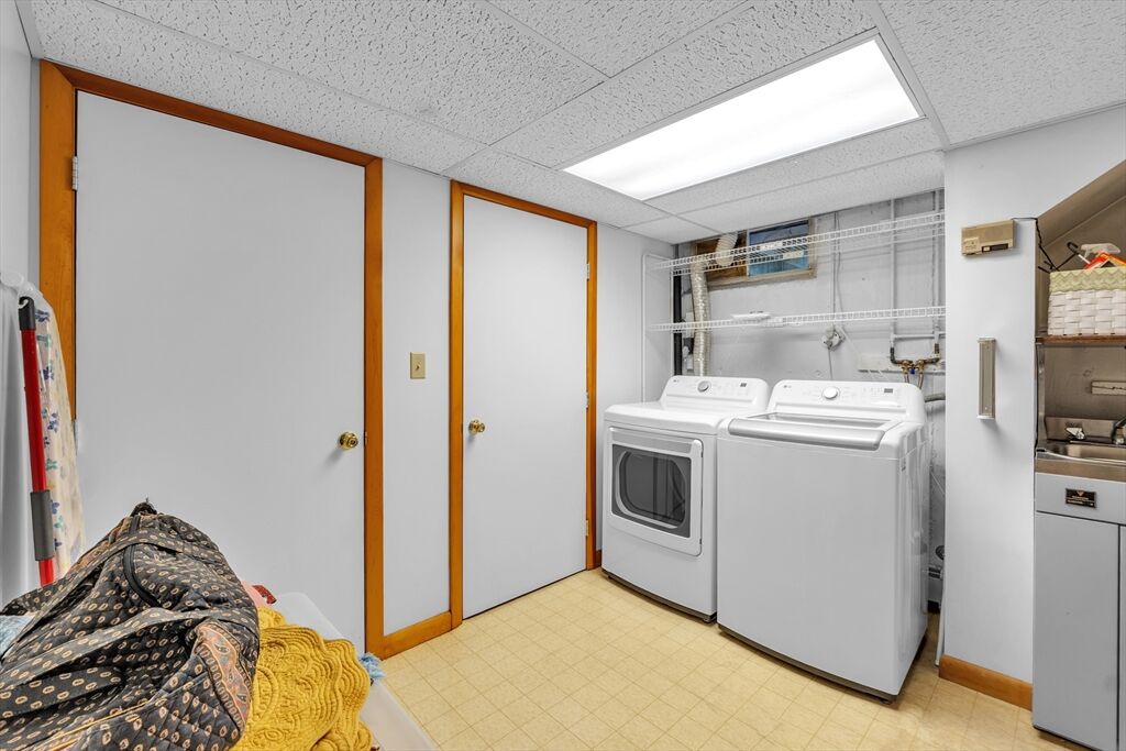 Laundry | Closet - Cedar Flooring - Laminate Electric Dryer Hookup Washer Hookup Lighting - Overhead Closet - Double Sink In Basement |