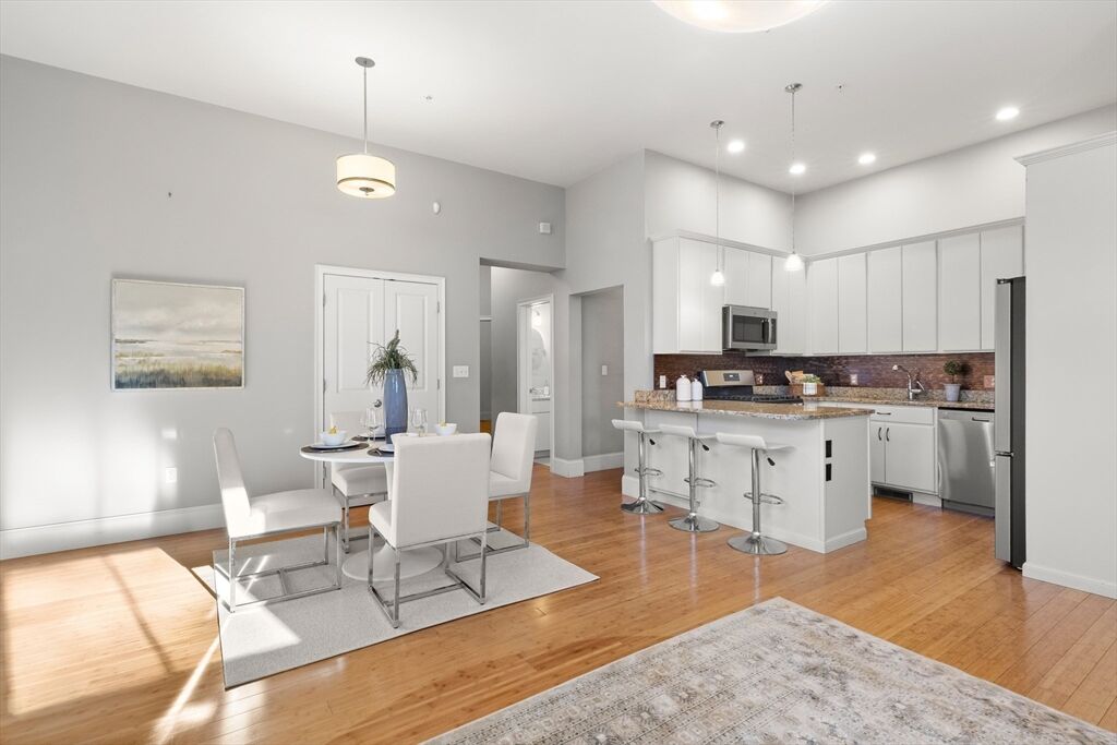 Welcome to 17 North St, perfectly placed in historic Salem and offering a blend of timeless character and contemporary living! This rare ground-floor duplex spans 1,700 sq ft with soaring ceilings, oversized windows, and quality finishes. Step into a bright open-concept layout with bamboo flooring and a kitchen featuring light maple cabinetry, a copper backsplash, new refrigerator, and a granite peninsula with seating. Two spacious main-level bedrooms include a Primary with its own bath and custom walk-in closet, plus a second full bath. The lower level adds a cozy den with a gas fireplace and another full bath—ideal for relaxing, working, workouts, or guests. One deeded storage unit and your exclusive parking space sits just outside the door. A well-managed HOA completes this standout home, minutes from the commuter rail, shops, and Salem’s cultural venues. Why wait for a competitive spring market? Start your new year in this gorgeous home. Pet policy: 2 pets allowed. 1dog up to 40lb