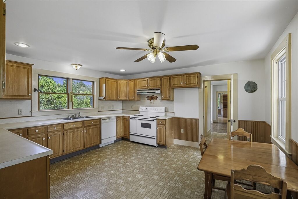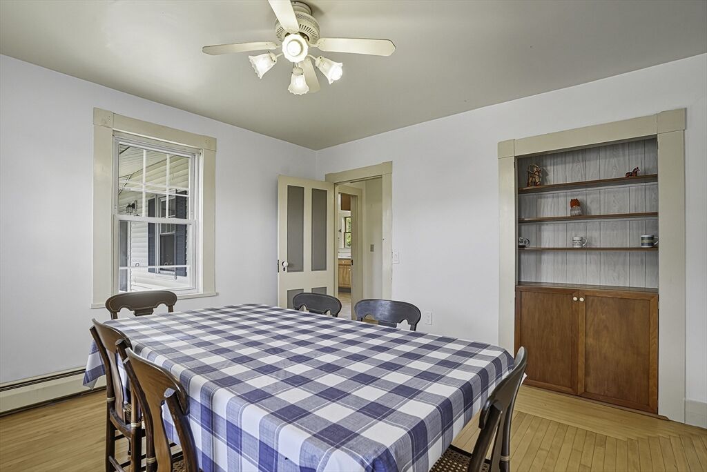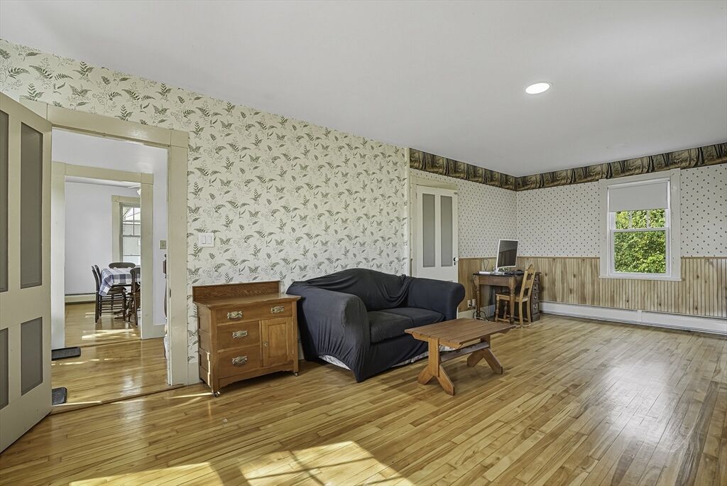 Rare opportunity awaits with this charming 3 bedroom antique style Cape, ideally situated on a level, scenic piece of land encompassing almost 1.5 acres. This property is a fantastic find, offering a quaint, move-in ready home with extraordinary potential for customization and expansion. First floor level features a warm, inviting front-to-back living room and separate dining room, both accented by hardwood flooring. The spacious kitchen offers warm maple cabinetry and plenty of room to have an island or casual dining table. A full bath and a versatile bonus room den or home office) complete the main level. Upstairs, you'll find three bedrooms, all with original wide plank flooring and a second full bath.The home needs some TLC, but the upside is huge! The attached workshop offers immediate expansion possibilities. The level backyard provides plenty of room to add on, garden, or simply unwind. Also included is a 25x19 outbuilding perfect for storage or hobbyist. Open House Saturday