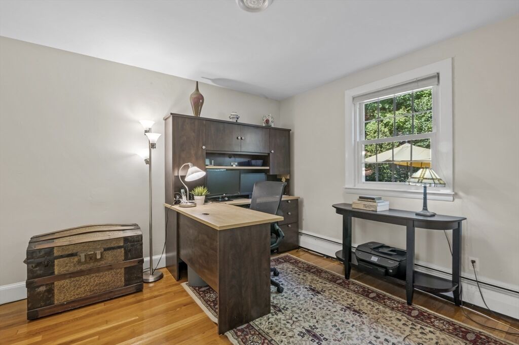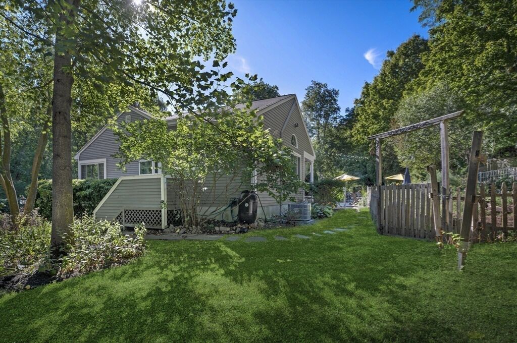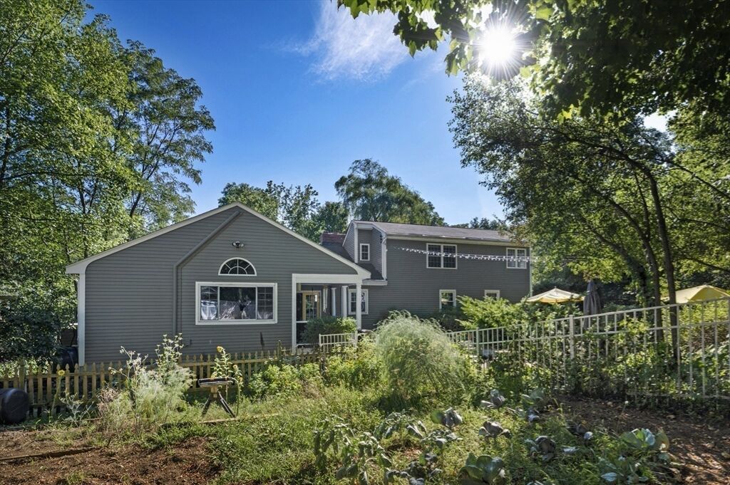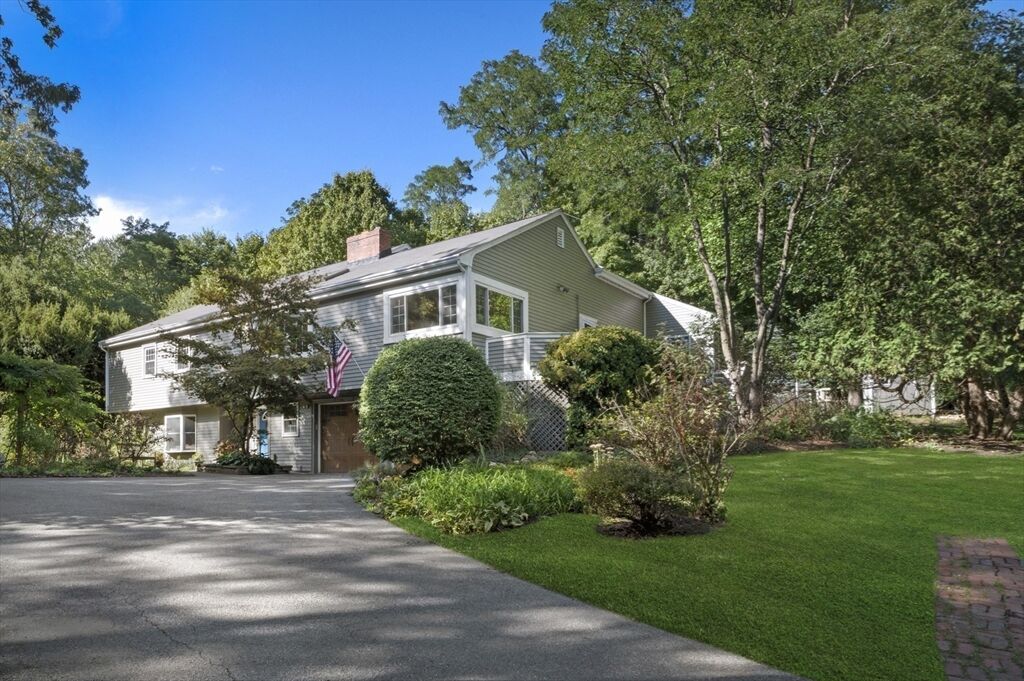 A hidden gem enveloped in greenery on 1.68 acres of land, this home offers ideal living in desirable Wenham. A gorgeous in ground, heated pool offers the perfect space for relaxing or entertaining around the built-in fire pit, while the small barn and gardens create a picturesque farm to table feel, primed for intentional living. Over 3000 square feet of interior living space was renovated in 2006. The light-filled main level offers an open concept feel that invites the serenity of the outdoors into every room. This house offers flexibility of living with primary suite options on both the main and upper levels, along with two additional bedrooms. The lower level holds a recreation room with bar, an office, an additional flex space, and bathroom - a great option for in-laws! A 2 car garage adds great function to the home. Close proximity and easy access to route 128, MBTA, and every amenity in both Wenham and Beverly add to the desirability of this home.