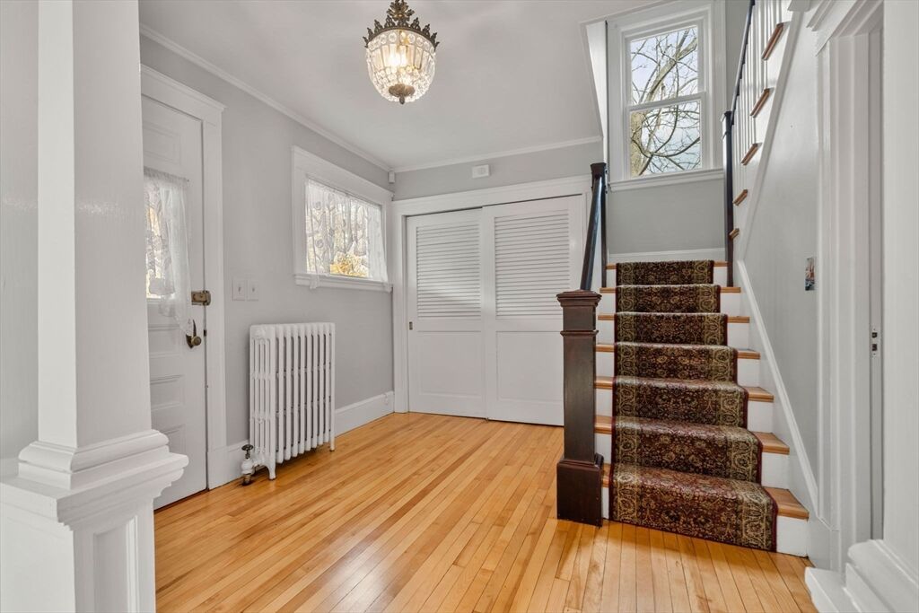 171 North Ave - a house with the slow, steady insistence of something built to last. This old-style Colonial wears its history without apology: symmetrical sash windows, modest moldings, and a living room warmed by a wood-burning fireplace that still insists upon gatherings. Inside, newly refinished hardwood floors run uninterrupted beneath rooms that feel both lived-in and ready for reinvention. The eat-in kitchen is practical and pleasing; granite counters, ample workspace, and a layout that invites long breakfasts and late-night conversations. Don't miss the office/nursery upstairs Mechanically, the house answers modern needs: a 2021 boiler and a new hot water heater mean fewer immediate surprises. Beyond the back door, the property reveals its singular advantage — a double lot with a backyard so vast it reads less like a yard and more like possibility: an ice rink in winter, a soccer or football field in the warmer months, a place for children and dogs and Summer chaos to roam free
