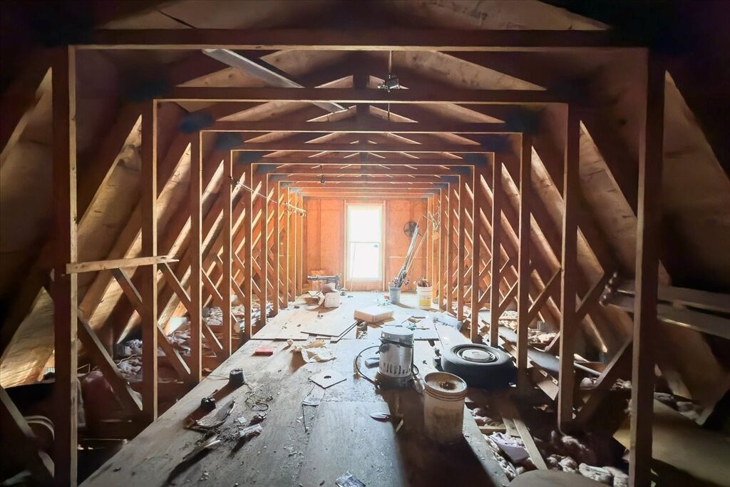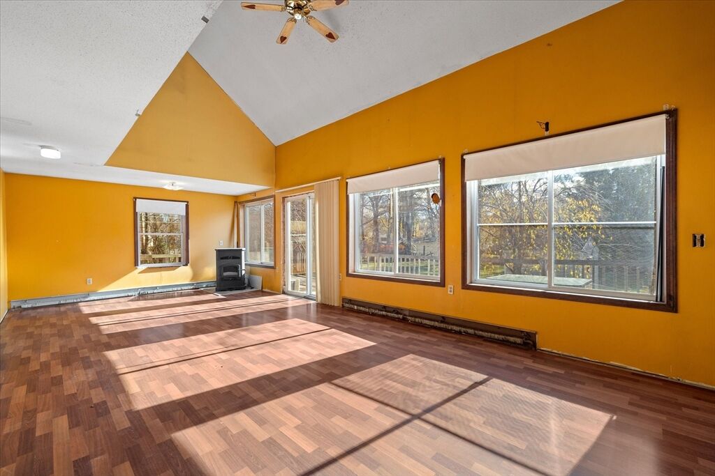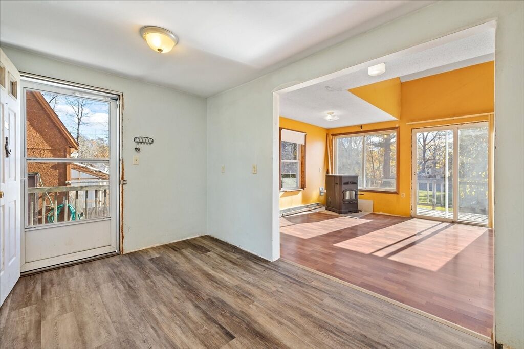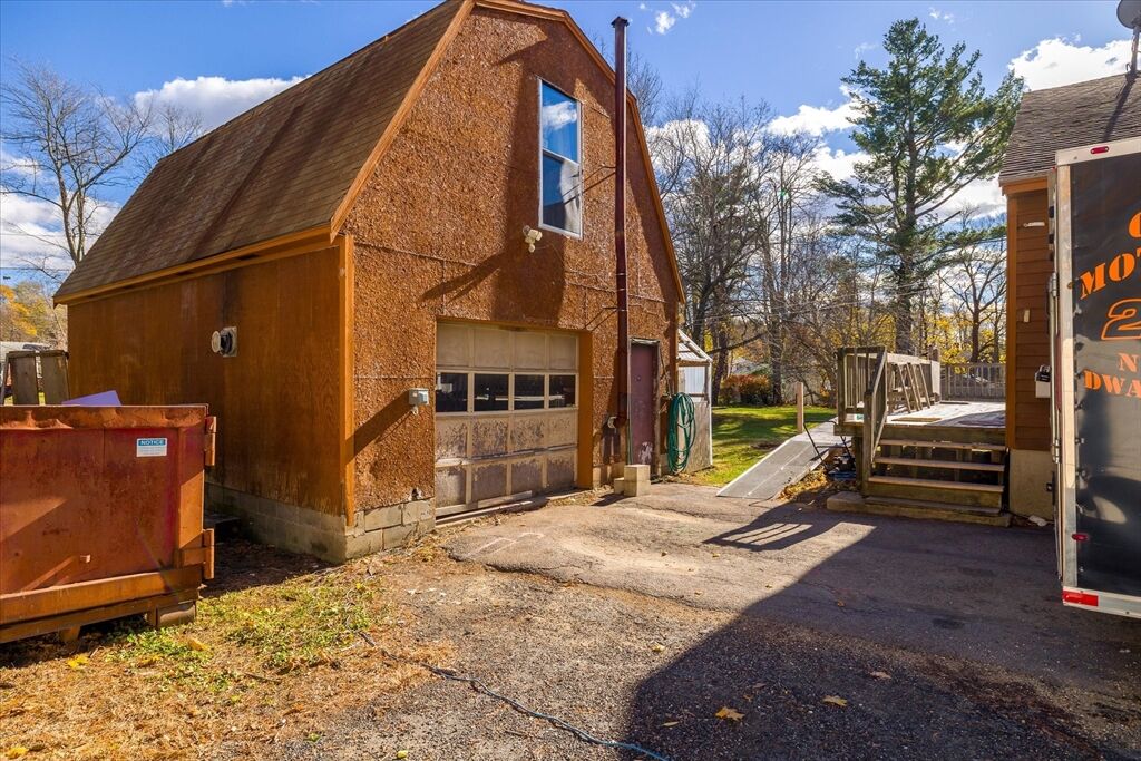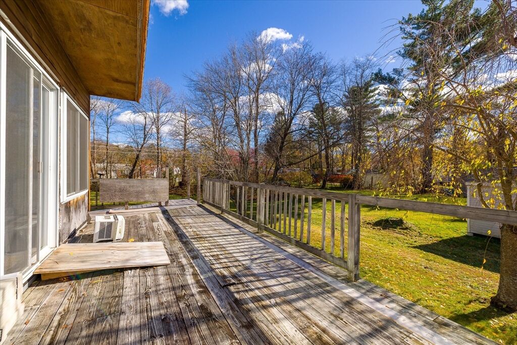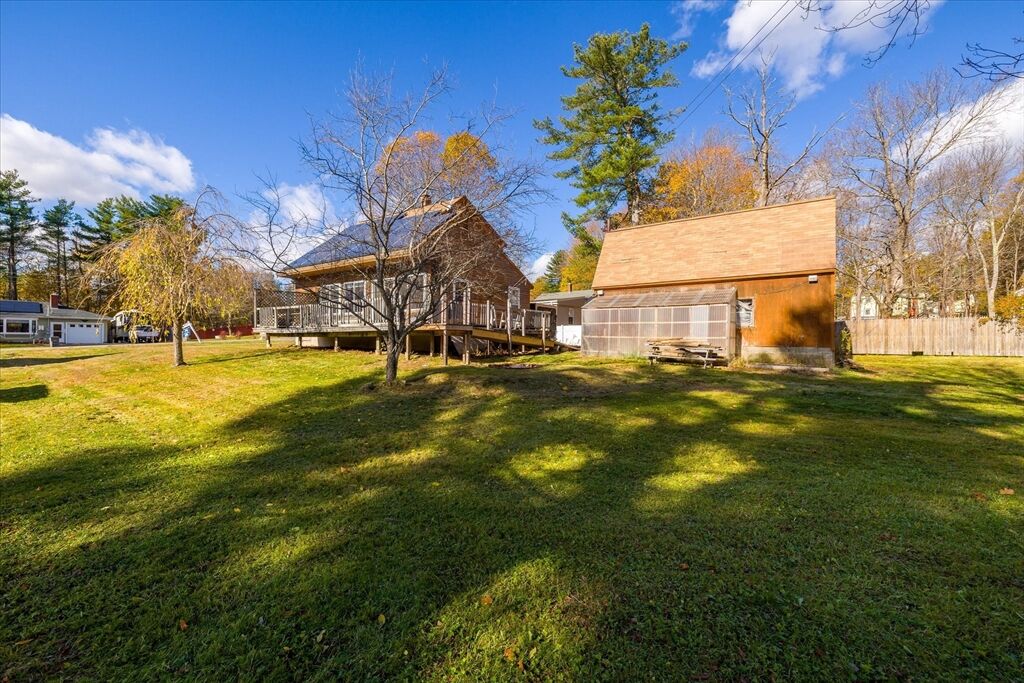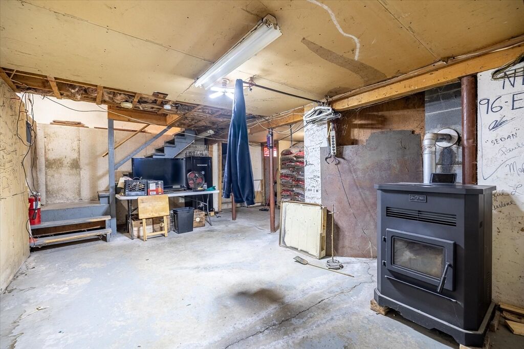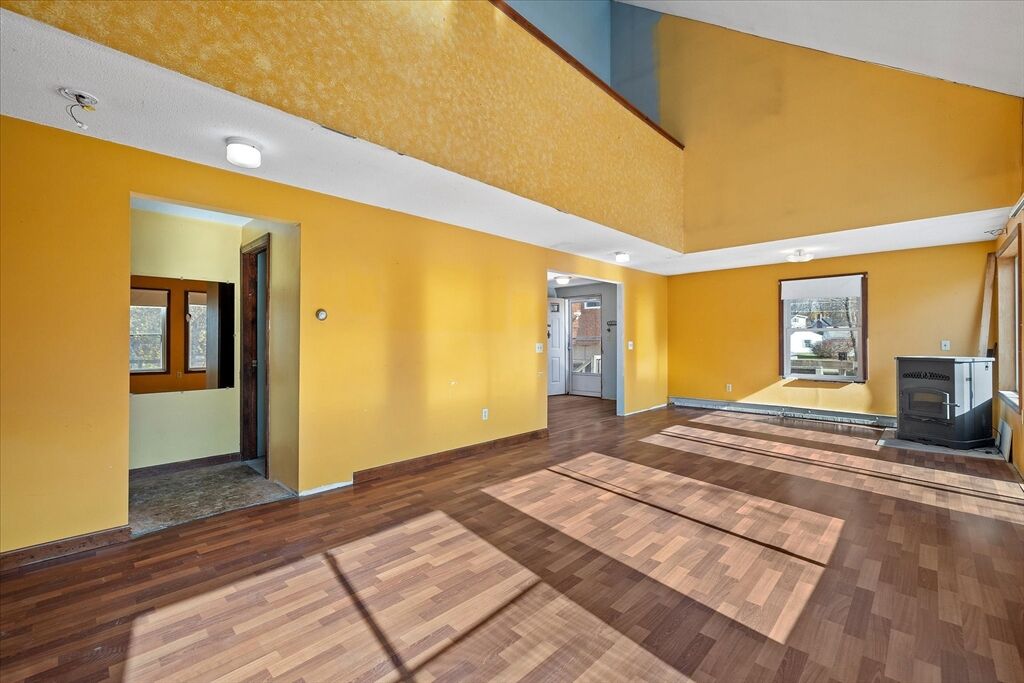 Welcome to 176 Prospect St - a bright and inviting 3-bedroom home full of potential, set on a beautiful 0.46-acre lot! The open-concept living and dining area is drenched in natural sunlight, featuring vaulted ceilings and a cozy pellet stove less than 5 years old - perfect for relaxing or entertaining. The spacious kitchen flows seamlessly into the main living space, while sliders lead out to a large deck overlooking the expansive backyard - ideal for gatherings, gardening, or simply enjoying peaceful outdoor space. One bedroom and full bath are on the main level, with two additional bedrooms upstairs. The basement offers laundry, storage, and a bonus room for future finishing. Enjoy peace of mind with a new sump pump and 50-year architectural roof (2005). The oversized detached garage with loft offers incredible space for a workshop, hobby area, or extra storage. With solid bones and great natural light, this home is the perfect opportunity to make it your own and build equity!