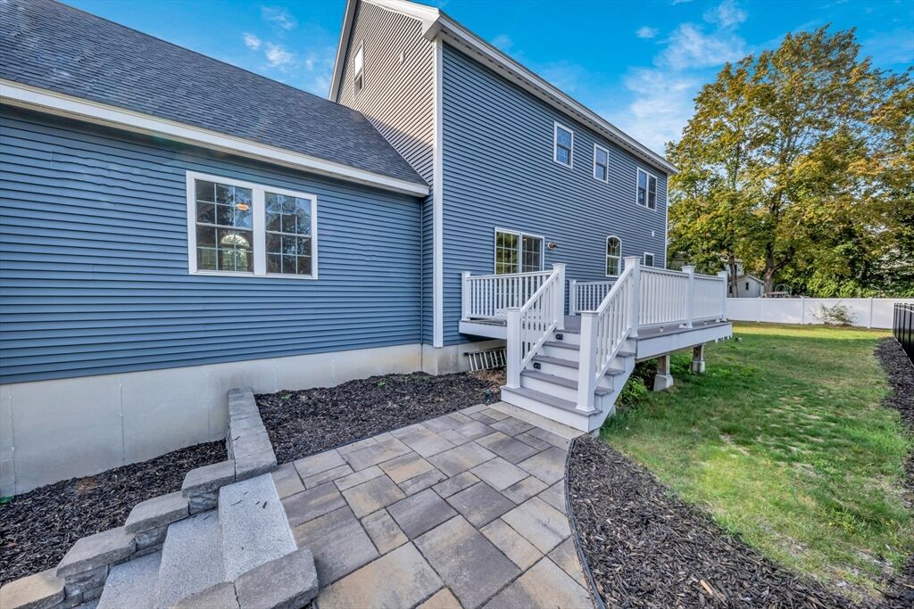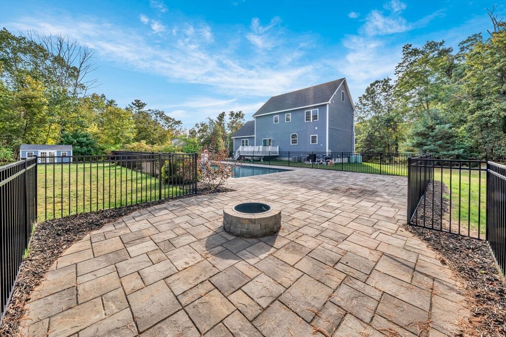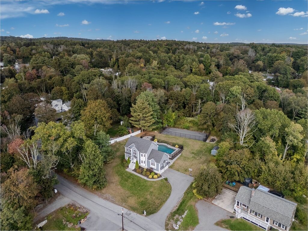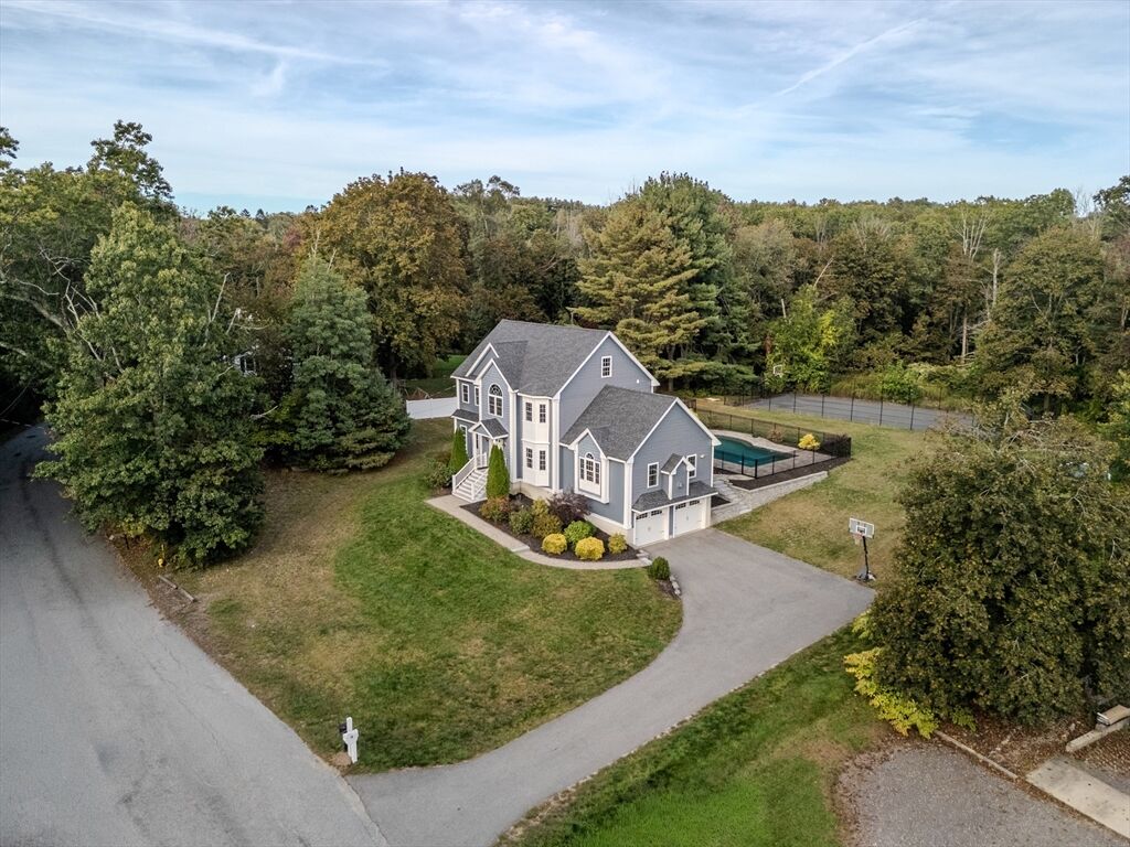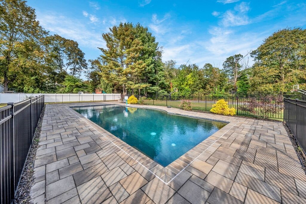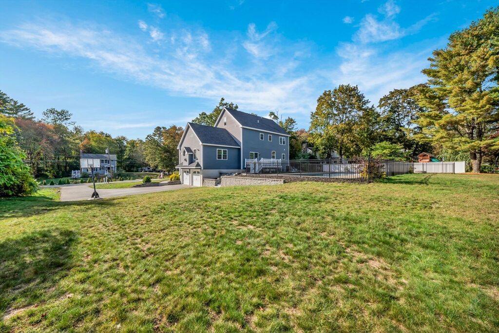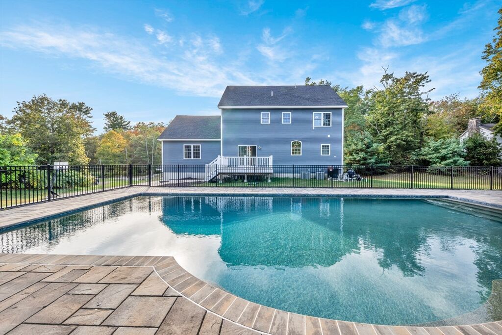 Exquisitely sited on a private 1.74-acre lot in Andover’s coveted South School District, this like-new modern colonial offers the finest in sophisticated luxury. Designed for both elegance & comfort, the open-concept main level is graced with soaring 9’ ceilings, gleaming hardwood floors, & a chef’s kitchen with upgraded finishes flows seamlessly to expansive living & dining spaces. The primary suite features a custom walk-in closet by Closets by Design, while the home’s 4 bedrooms and 3.5 baths include a finished third-floor ensuite with adjoining flexible space ideal for a home office or fitness studio. The finished lower level elevates entertaining with a movie room, game room, & versatile bonus areas. Outdoors, a resort-inspired South Shore gunite heated pool & fire pit anchor the grounds, complemented by a private sports court and ample open space. With town water, sewer, & short drive to downtown, this residence delivers a rare fusion of sophistication & timeless appeal.