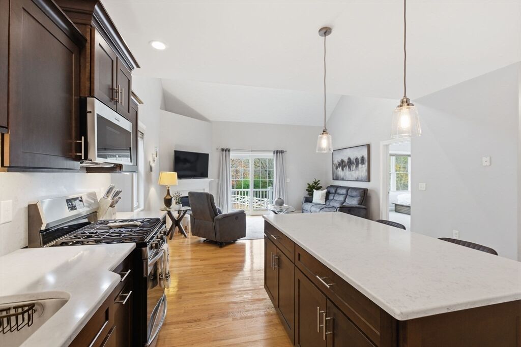 Nestled at 18 Jaclyn's Way U:18, this charming condominium offers a harmonious blend of comfort and contemporary design. The expansive 2485 square feet of living area provides a wealth of space beginning with the open first floor-plan featuring a luxurious dining area, and chef's kitchen with shaker cabinets, quartz countertops, s/s appliances, oversized island & decor lighting. Open to the kitchen the sun filled living room features a gas fireplace, cathedral ceilings & glass slider to outside deck. The home boasts two primary suites, one on each level w/ en-suite baths. The 2nd fl has an additional bedroom, an office, laundry area and a loft-like family room. A single-car garage and huge unfinished lower level perfect for storage finishes off this gorgeous home. Built in 2019, this residence presents an exceptional opportunity to embrace a refined lifestyle and begin loving where you live!
