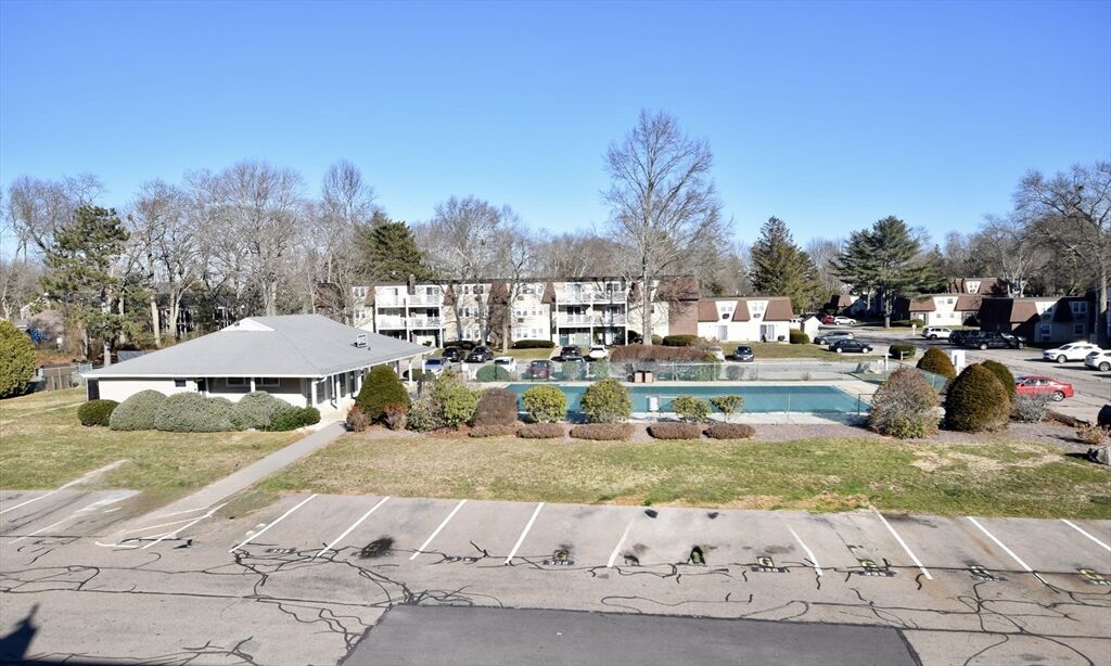 Welcome to Kingswood Village in the heart of Bridgewater. This sought-after TOP-FLOOR CORNER unit overlooks the pool & is tucked towards the back of the complex. Offering a fully applianced kitchen, a spacious living room w/ access to a private deck, a primary bedroom w/ an en-suite half bath & walk-in closet, plus a nice-sized second bedroom. Enjoy 2 built-in wall AC units for year-round comfort, 1 assigned parking space plus guest spots, card-operated laundry in the building & exclusive access to on-site amenities including a swimming pool & tennis courts. Conveniently located within walking distance to town center including restaurants, shopping, cafes, banking & pharmacy. Easy access to Bridgewater State University, supermarkets, post office, commuter rail & highway access. Stop renting & start building equity...a great opportunity for first-time home buyers, down-sizers or snowbirds. Investors...this unit most recently earned $2,200 per month in rental income.